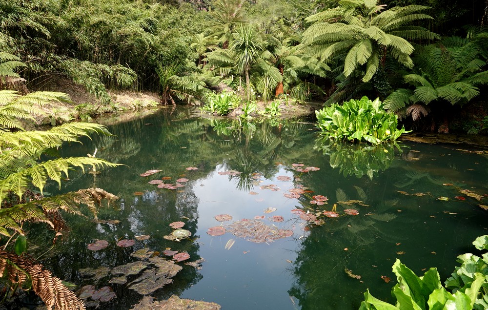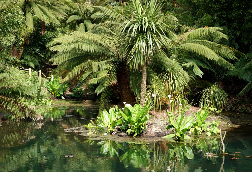 Changement radical d’ambiance quand on attaque la remontée : maintenant, nous évoluons dans une superbe jungle où fougères géantes et plantes tropicales forment un paysage surprenant ! En effet, ce vallon, encaissé et exposé plein sud, est bien protégé des vents froids de la mer.