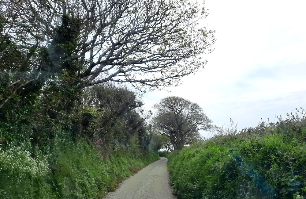 Après Hayle et la côte nord, nous passons désormais au sud et mettons le cap sur Mevagissey, un petit port de pêche situé à 2.5km de notre nouveau camping. Alors que l’on se félicite de n’avoir emprunté que de bonnes routes jusqu’à Grampound, les dix derniers kilomètres sont éprouvants ! En effet, alors que nous évoluons sur une voie déjà pas bien large, Google map nous fait subitement bifurquer vers une autre encore plus étroite. Les deux côtés du camping-car touchent le mur végétal qui nous enserre… Impressionnant, et pour être franc, pas spécialement agréable ! Heureusement, nous ne croisons personne, ni piéton ni véhicule. Après deux kilomètres à toute petite vitesse – et c’est très long, deux kilomètres dans de telles conditions – nous débouchons enfin sur une route qui nous semble être une autoroute – non, rassurez-vous, il s’agissait juste d’une petite départementale de campagne !