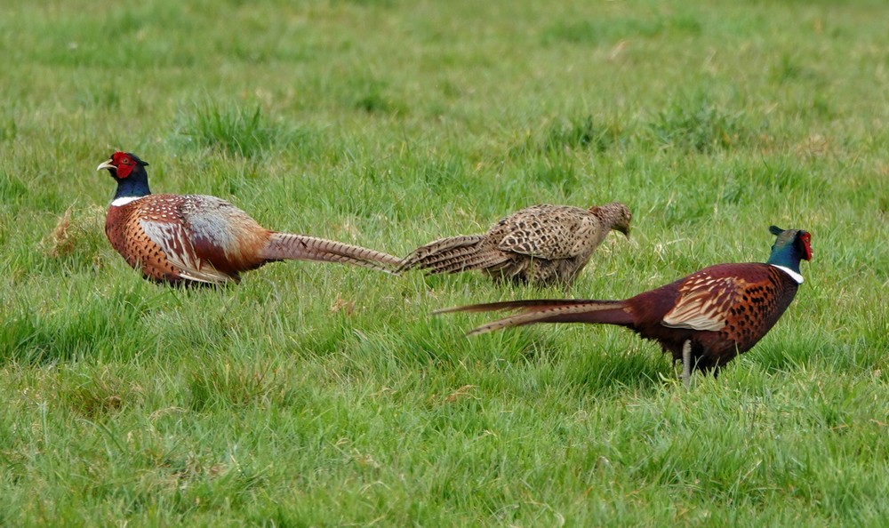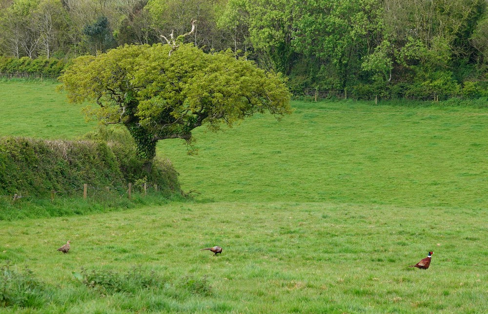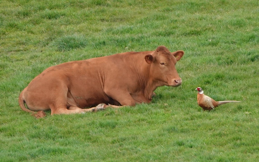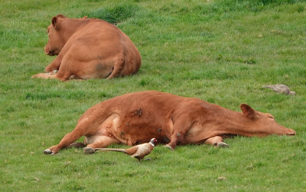 Encore une journée morose côté ciel… Dans la matinée, on se contente donc d’un tour des champs du camping et d’une observation des animaux. Et là, ô surprise, vaches et moutons côtoient au plus près les faisans : du jamais vu pour nous ! Néanmoins, depuis notre arrivée en Angleterre, le faisan est un oiseau que l’on voit partout, en nombre et très facilement…