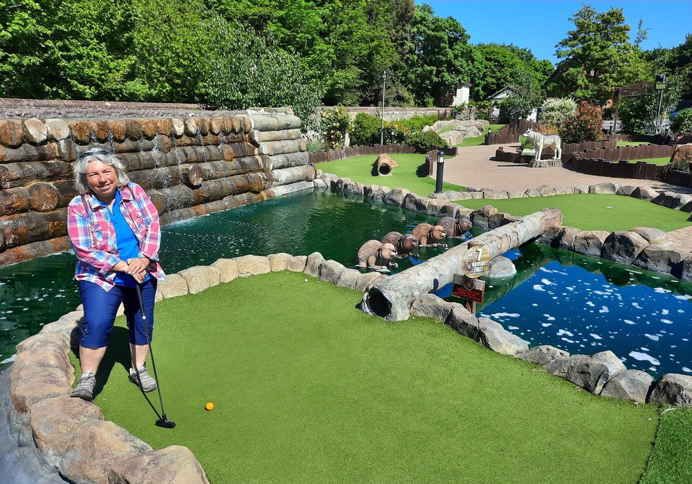 Avant de rentrer au camping, nous faisons un crochet par le Hotham Park, un poumon de verdure bien agréable. Par hasard, on tombe sur un autre mini-golf : et hop, c’est reparti pour 18 trous ! Cette fois, le terrain présente de belles difficultés avec des obstacles pas toujours évidents à franchir. De nouveau – et toujours très modestement ! – je remporte le match, devant un Gérard dépité par ses quelques coups ratés… Nous reviendrons dans la semaine, mais cette fois nous prendrons nos propres putters : ainsi Gérard n’aura plus l’excuse d’invoquer le mauvais matériel pour justifier sa défaite !