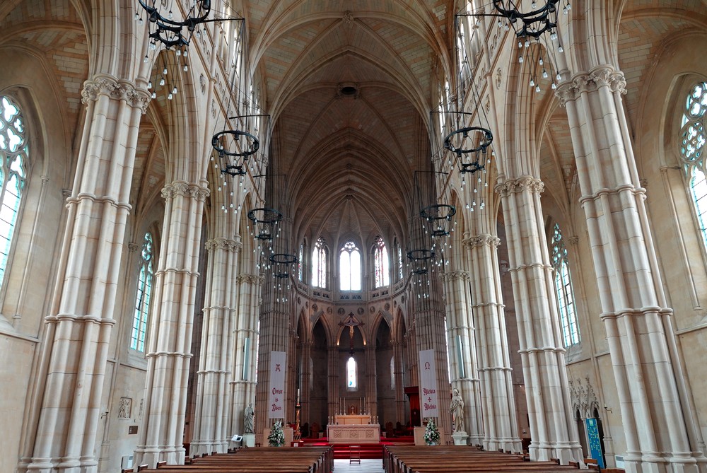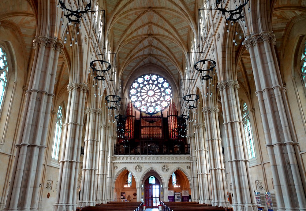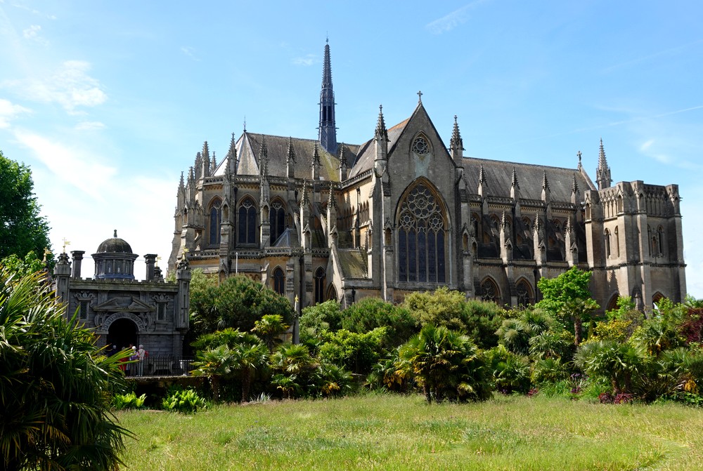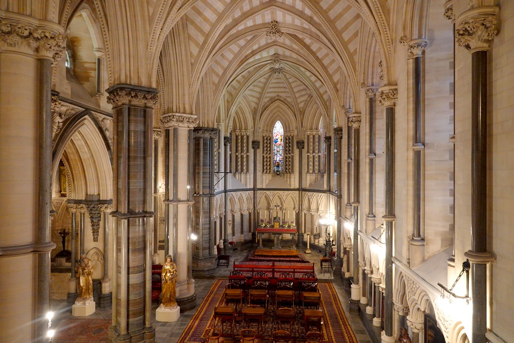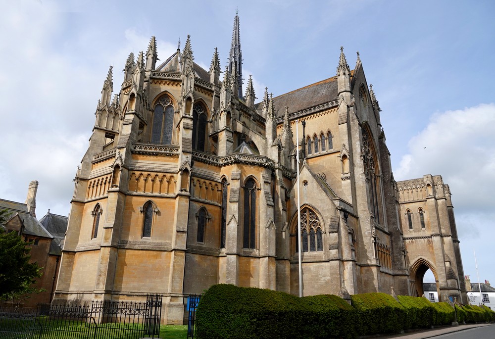 Comme il est trop tôt pour pénétrer dans le château, nous commençons par jeter un œil à la cathédrale catholique, érigée dans un style gothique français et consacrée en 1873. On doit sa conception à la famille Howard, qui, en tant que ducs de Norfolk et comtes d’Arundel, sont les représentants catholiques de langue anglaise les plus importants dans la pairie d’Angleterre.