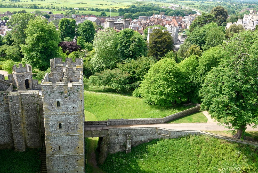 Surplombant la rivière Arun, le château est progressivement agrandi au fil des siècles, avec d’abord le donjon en pierre – the Keep – puis les autres bâtiments. Gravement endommagé pendant la guerre civile – entre 1542 et 1545 – quelques réparations sont effectuées au XVIIIe siècle, mais il faut attendre le milieu du XIXe siècle – et les grands travaux de rénovation d’Henry, 15e Duc de Norfolk – pour que le château présente enfin l’aspect qu’on lui connait aujourd’hui.