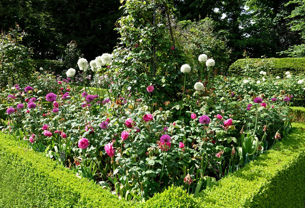 Comme les intérieurs du château n’ouvrent qu’à midi, nous partons explorer les jardins. Nous commençons par la superbe roseraie…