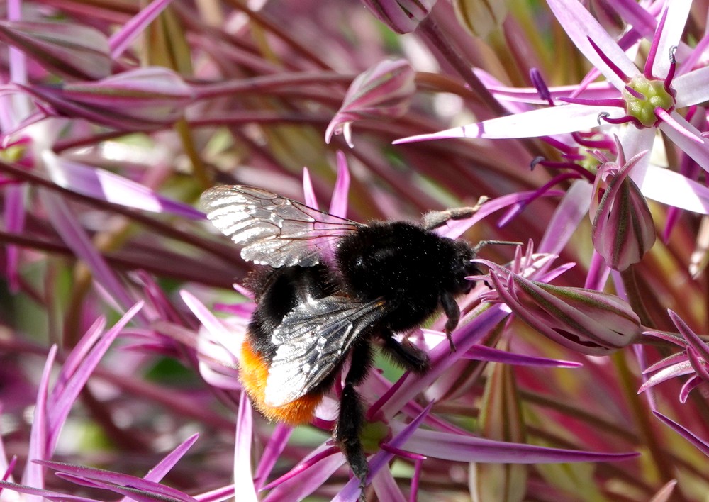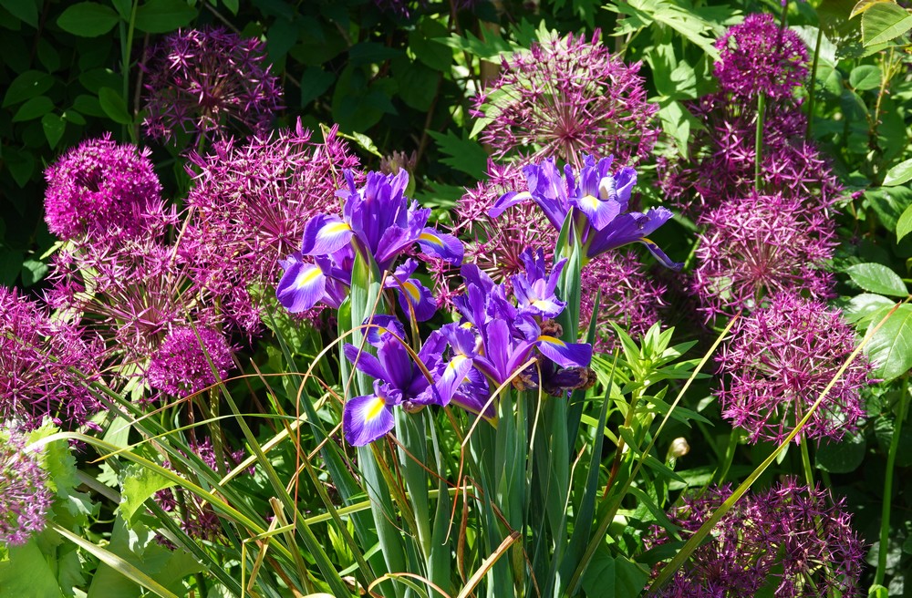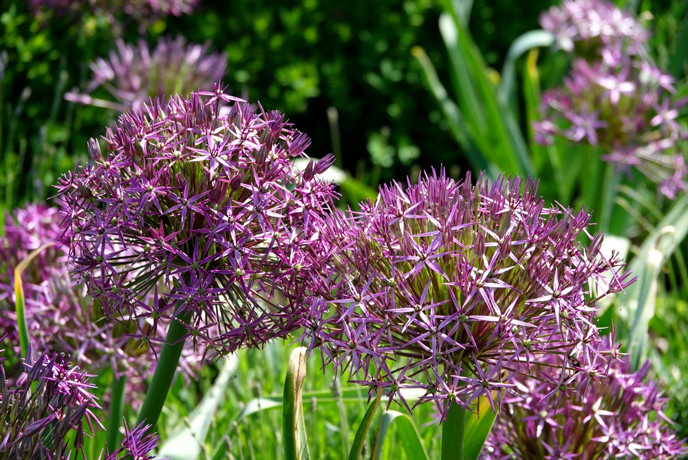 On a de la chance, car mai est le mois de floraison des alliums, ces grosses fleurs violettes qui appartiennent à la famille des poireaux, des oignons et des échalotes.
