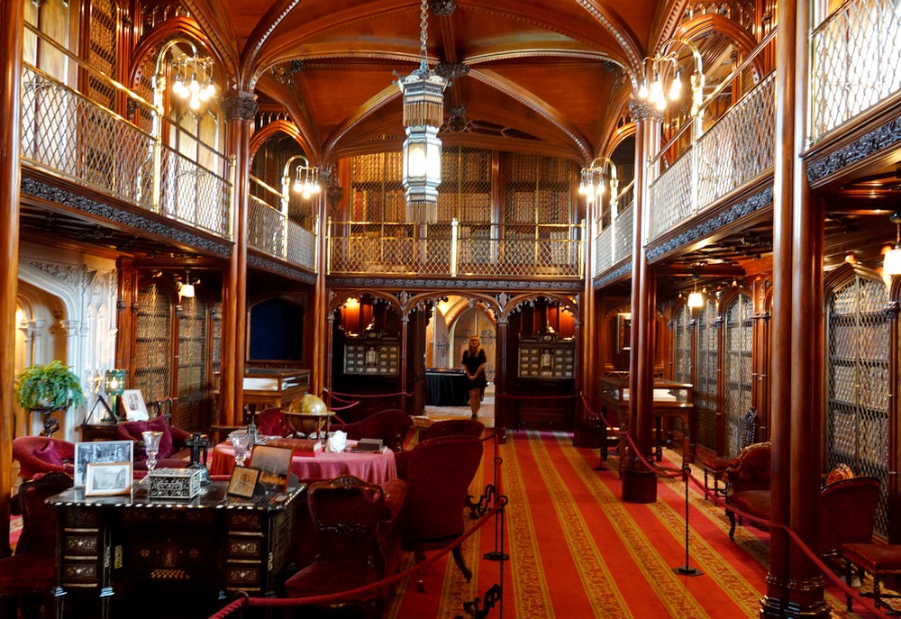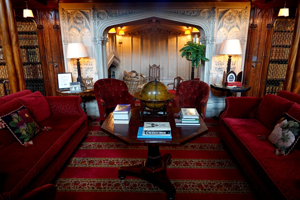 Viennent ensuite des pièces plus intimistes comme la salle à manger, les salons, les chambres à coucher et surtout la magnifique bibliothèque : un livre à la main, on y aurait volontiers pris une tasse de thé, bien calé dans le recoin de la cheminée !