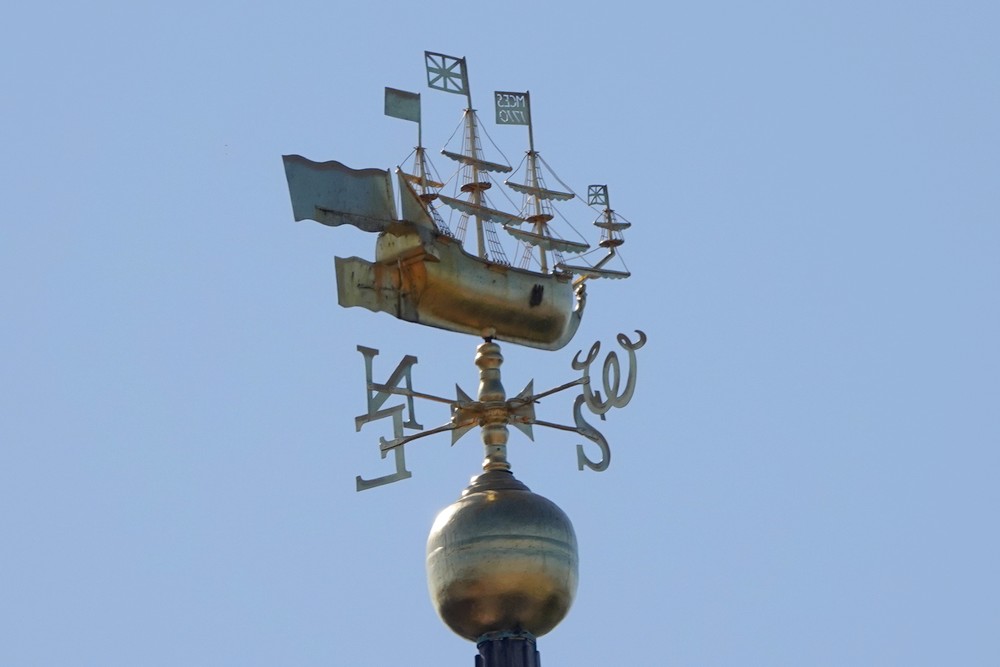 Plutôt que de rebrousser chemin par le même itinéraire, nous faisons un crochet par la cathédrale dont la girouette en forme de vieux galion affiche clairement l’esprit maritime de la ville.