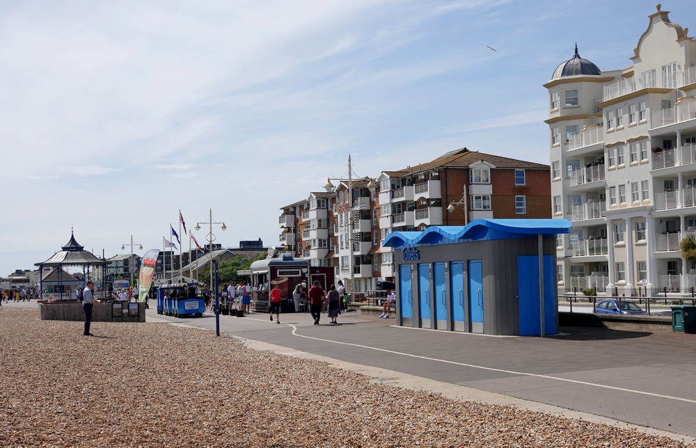 Vers midi, ayant vu tout ce que nous avions prévu, nous décidons de retourner à Bognor Regis pour déjeuner en bord de plage. Comme le matin, le premier train est remplacé par un bus, et nous quittons rapidement Portsmouth pour Havant. Là, un employé nous conseille d’embarquer à bord du train pour Londres pour éviter que nous ayons à changer de quai. Erreur ! Le train tarde à partir, et quand nous arrivons à Barnham, notre correspondance vient de nous filer sous les yeux : résultat, nous avons une heure à patienter, et c’est finalement vers 14h30 que nous nous attablons devant un fish and chips… Un peu long, ce retour !