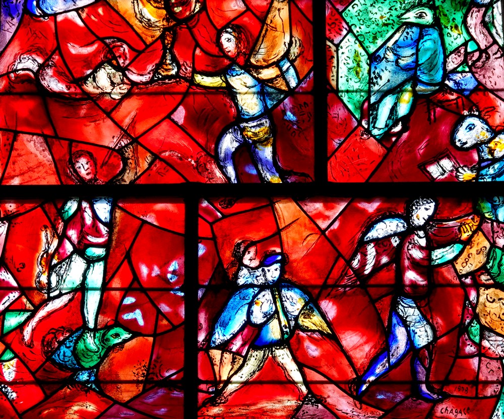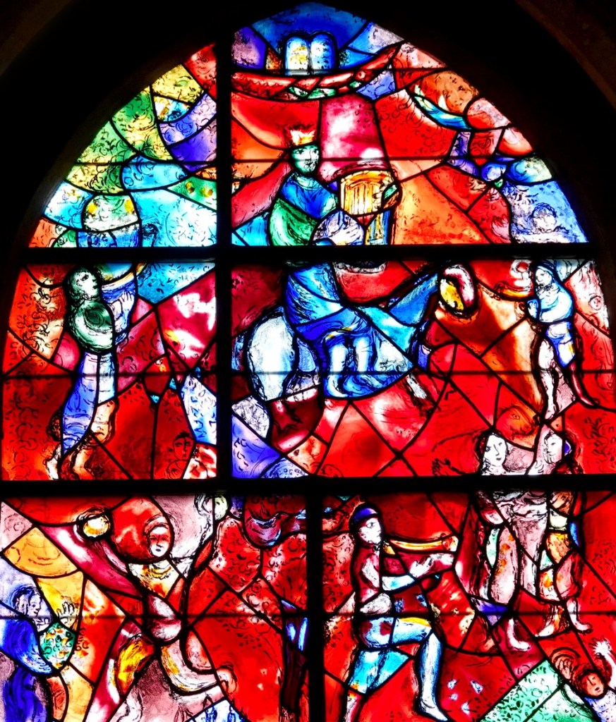 Nous visitons ensuite la cathédrale, impressionnante tant par sa haute flèche que par le vieux campanile qui la jouxte. A l’intérieur, ce sont surtout la tapisserie moderne et colorée de l’autel et le superbe vitrail de Chagall qui retiennent notre attention…