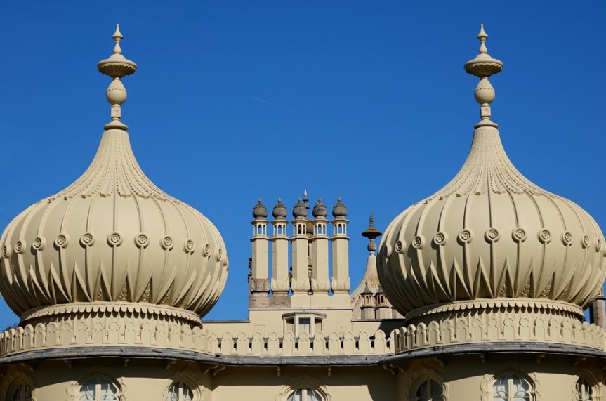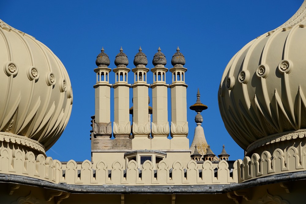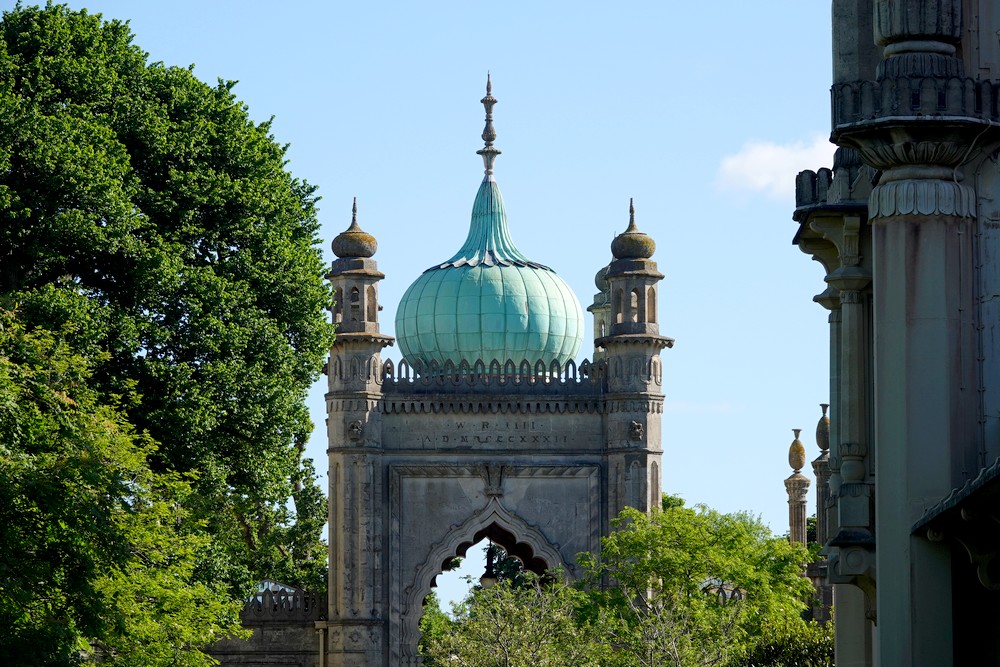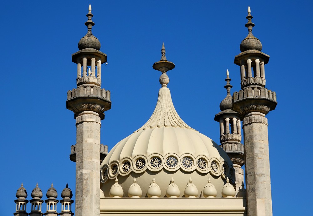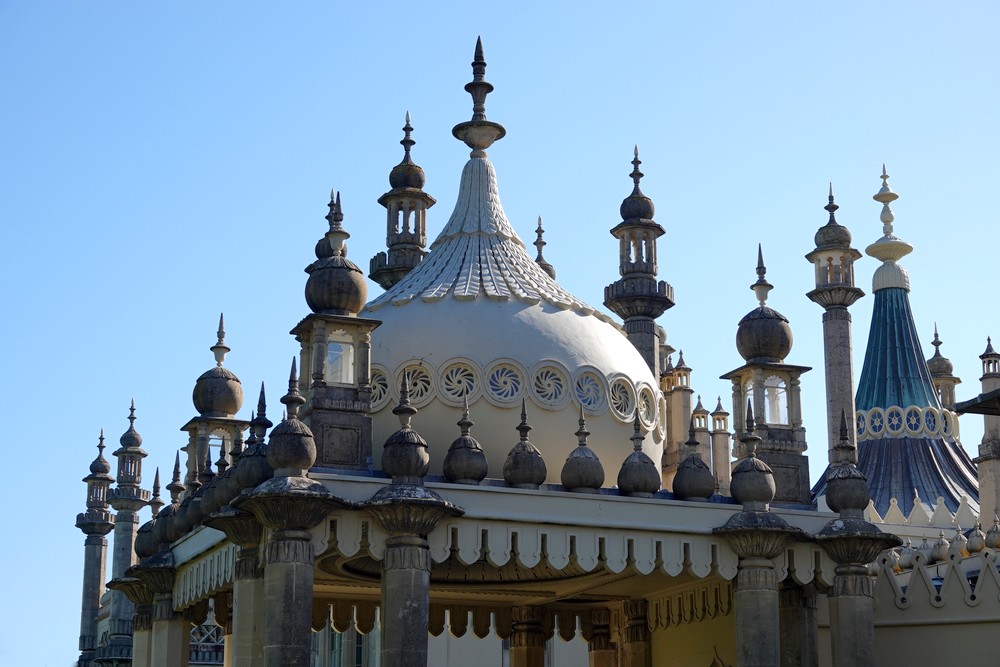 Puisque l’on est dans la partie historique de la ville, nous enchainons avec la visite extérieure du magnifique – et ô combien surprenant – Royal Pavilion, une ancienne résidence royale construite au début du XIXe siècle pour le prince régent et futur roi George IV comme une résidence de bord de mer. Conçu dans un style architectural exotique, l’allure générale du pavillon est de style anglo-indien, un style en vogue à l’époque en Inde, mais bien sûr peu répandu en Angleterre ! Le bâtiment étant particulièrement photogénique le matin de bonne heure – sa façade principale est exposée à l’est – on passe un long moment à en observer les mille et un détails !