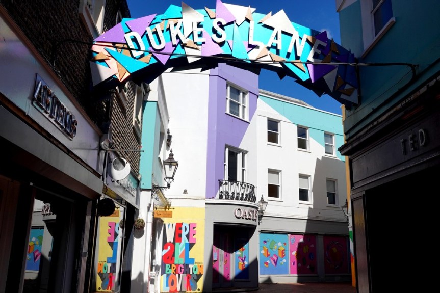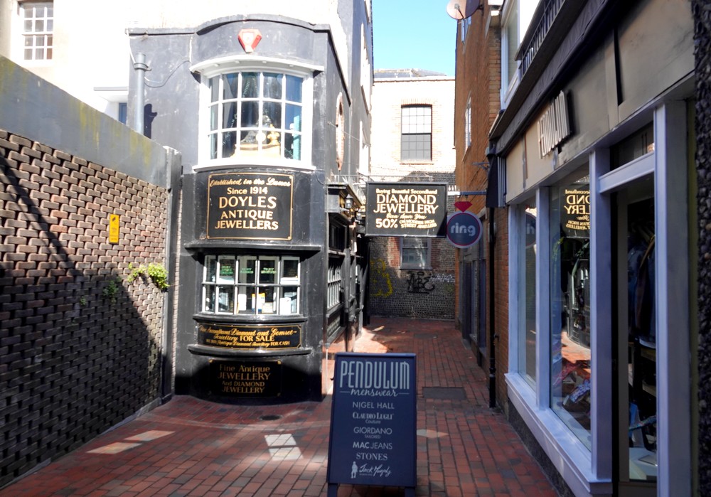 En ressortant du parc – on a d’ailleurs été surpris par le libre accès aux lieux – nous nous baladons dans les Lanes, un labyrinthe de ruelles bordées de restaurants, boutiques vintages, bijouteries et magasins d’antiquités. Ici, on est au cœur du vieux Brighton, un quartier qui s’anime particulièrement dès la mi-journée et le soir…