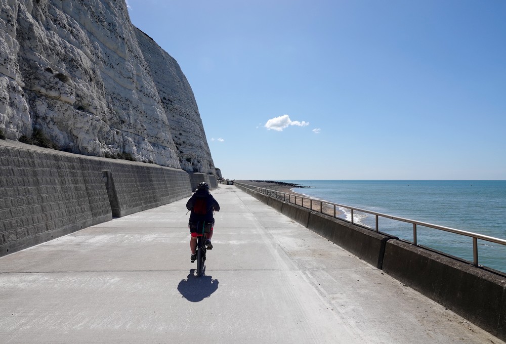 - Belle balade à vélo de Brighton à Saltdean, via la Marina, par la piste cyclable qui passe au pied des falaises de craie, 16km AR, plat et facile !