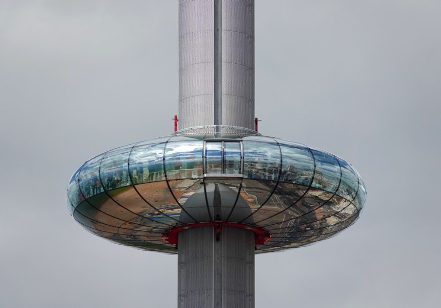 Alors que nous étions seuls ou presque en début de matinée, on avance maintenant au touche-touche sur la promenade qui longe la plage. Du coup, on se contente de jeter un œil rapide à la British Airways i360, la plus haute tour ascensionnelle du monde. Pour être honnête, on trouve que ce mât de 162m dénature un peu le paysage ! Mais il est sûr que ceux qui prennent place à bord de la plateforme d’observation circulaire doivent profiter d’un panorama exceptionnel sur les environs.