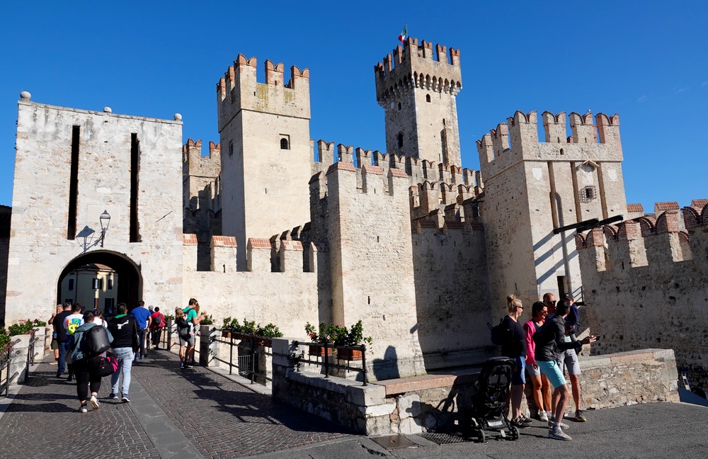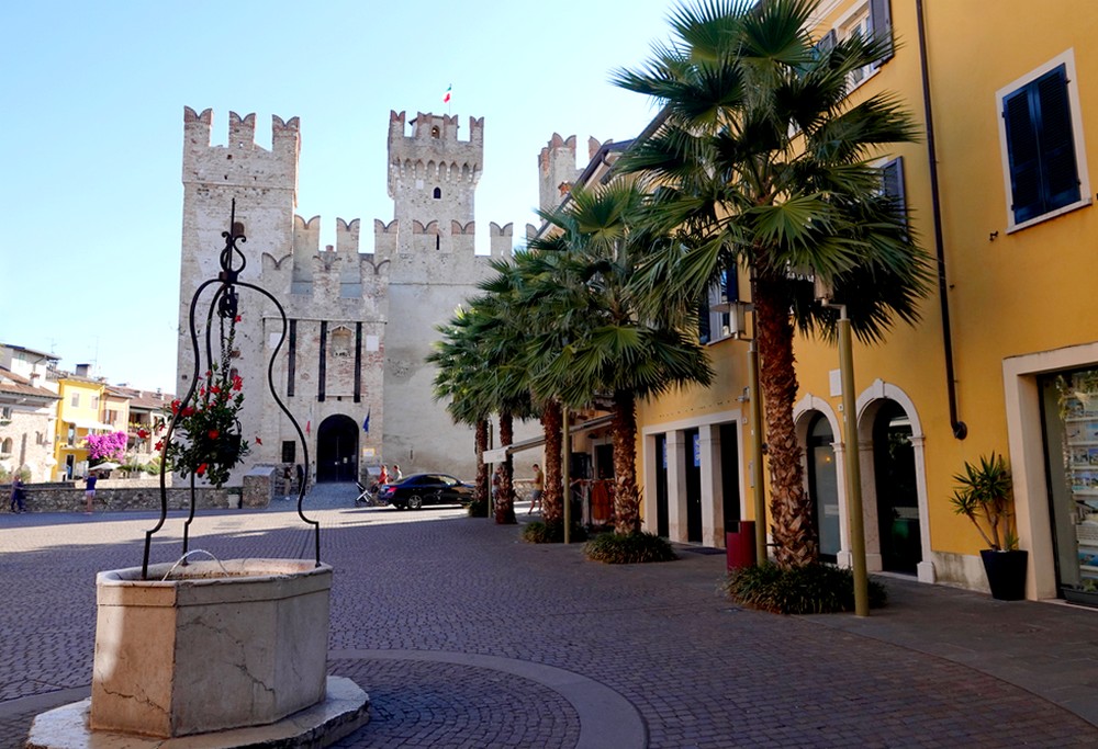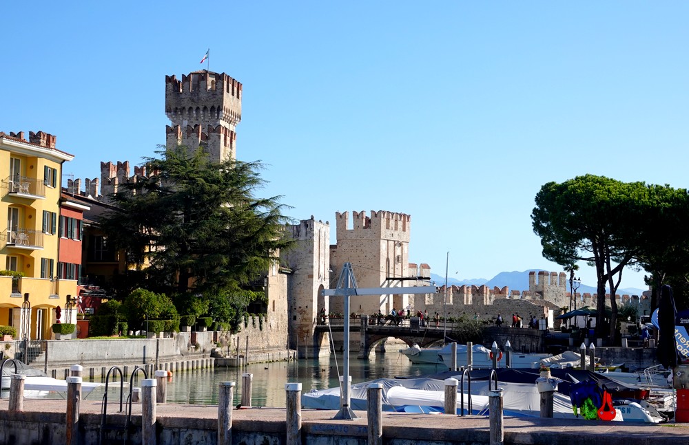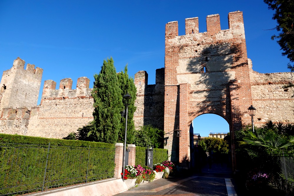 Arrivés à Lazise, nous sommes immédiatement conquis par le charme de ce gros bourg médiéval. Habité dès la préhistoire, ce fut également un centre important à l’époque romaine, où il prit le nom de Lasitium – d’où découle son nom actuel qui, littéralement, signifie Ville du Lac. Au Xe siècle, sous la domination des Lombards, les habitants reçurent le privilège de pouvoir pêcher dans le lac et de construire des fortifications pour se protéger. Devenue commune libre au XIIe siècle, Lazise passa sous la domination des Scaligeri – la famille qui construisit presque tous les châteaux de la région – puis plus tard sous celle des Visconti avant de tomber dans le giron de la République de Venise.