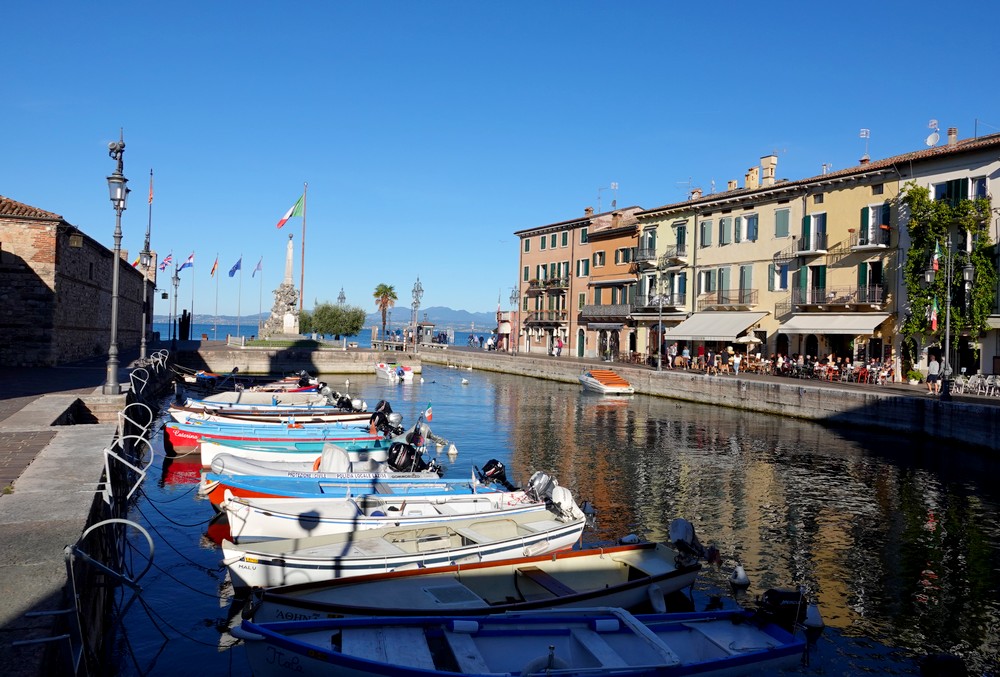 Et hop, ce matin encore, on ne lambine pas et nous profitons du beau ciel bleu pour entamer une nouvelle balade à vélo. Cette fois, nous commençons par visiter tranquillement Peschiera – comprenez, sans une foule qui nous empêche d’avancer dans les ruelles étroites de la ville !