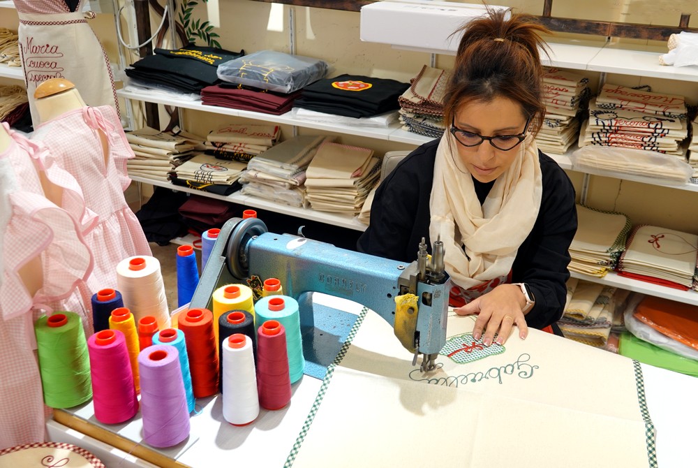 N’étant concerné par aucune de ces problématiques (!!!), nous ne nous attardons pas et préférons visiter le magasin voisin, spécialisé dans la personnalisation de tabliers, torchons et serviettes de toilette. Un beau travail de broderie machine effectué à une vitesse époustouflante !