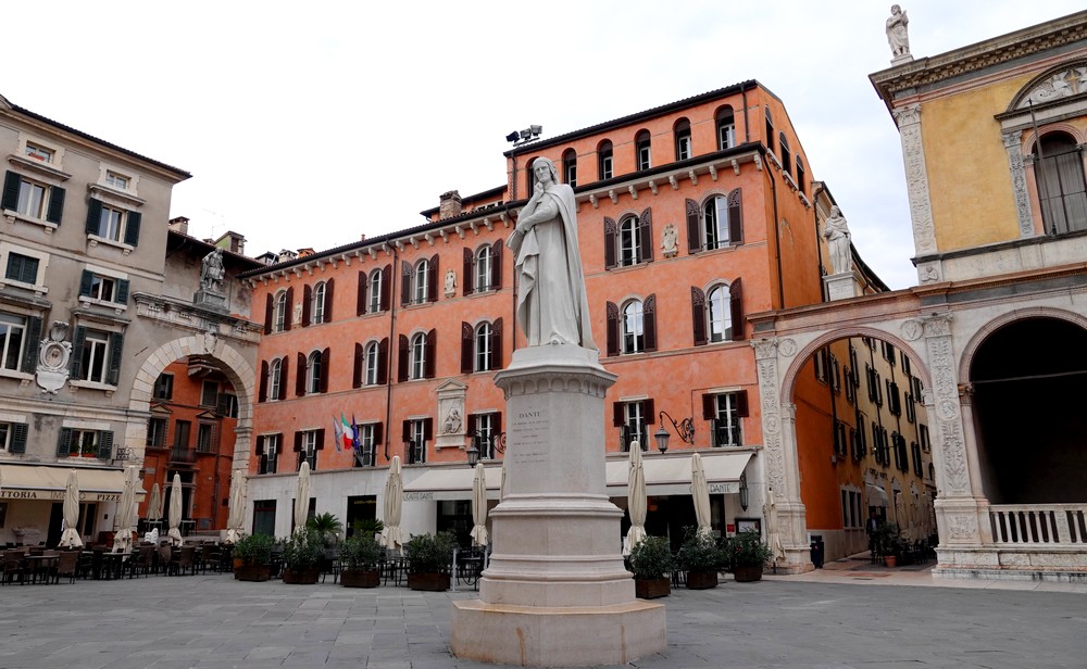 Juste à côté, la Piazza dei Signori – aussi dénommée aussi Piazza Dante dont une statue, installée en 1865, rappelle les séjours du poète entre 1312 et 1319 – fut créée au Moyen Âge lors de la construction des palais de la famille Scaligeri, et assuma longtemps le rôle de centre politique et administrative de la cité.