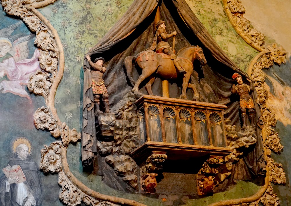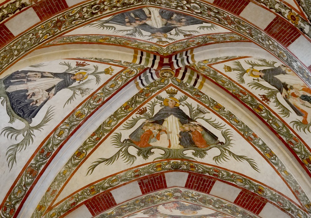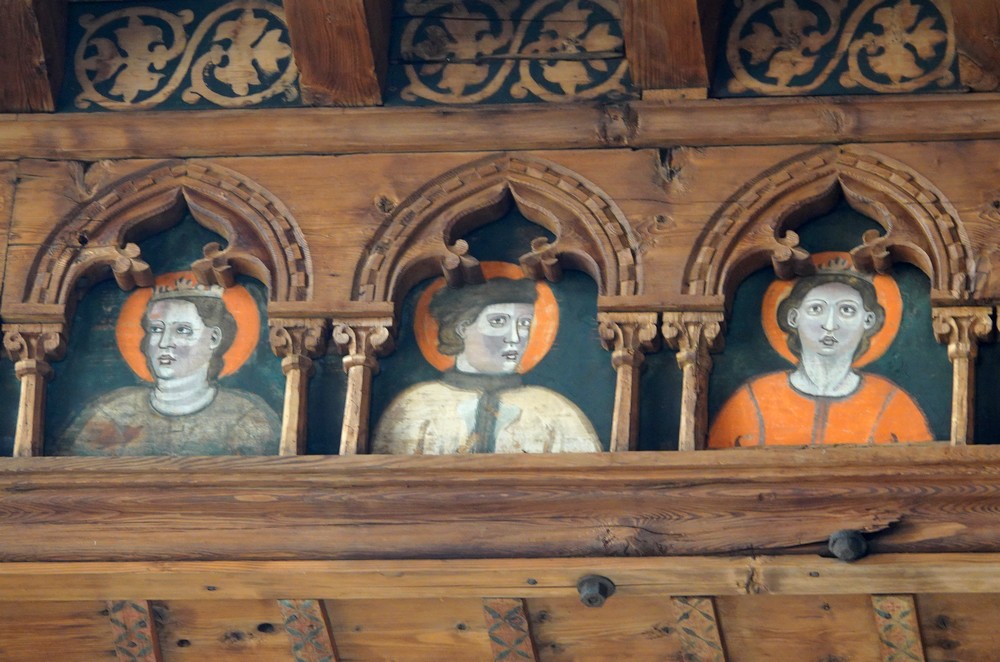 Une fois de plus, nous sommes impressionnés par les nombreux murs peints et par le plafond à caisson, dont les alvéoles sont ornées de têtes toutes différentes.