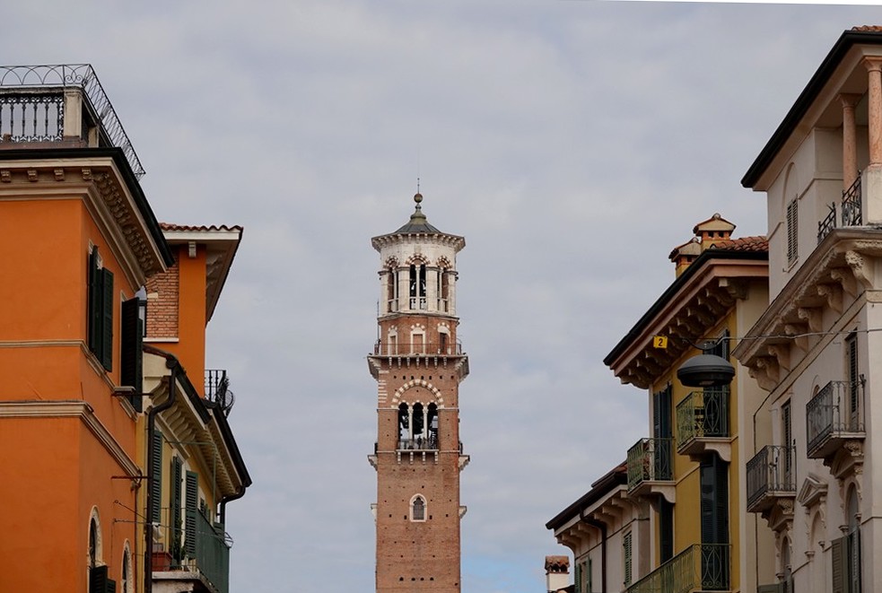 Après un tour rapide de la cathédrale Santa Maria Matricolare qui nous déçoit – nous trouvons l’intérieur très classique et sans âme, un avis qui n’engage que nous bien sûr ! – nous achetons des foccacias que nous dégustons au bord de l’Adige. Le soleil étant revenu, nous retournons vers la Piazza delle Erbe, dominée par la Tour des Lamberti. Celle-ci fut construite en 1172 sur les ordres de la puissante famille des Lamberti et mesurait alors 37 mètres de haut. Mais personne ne sait précisément quelle était la fonction de l’édifice, la famille ayant été rapidement bannie de la ville. Le tour ayant été touchée par la foudre, elle fut reconstruite en 1464 et passa à 84m de haut…