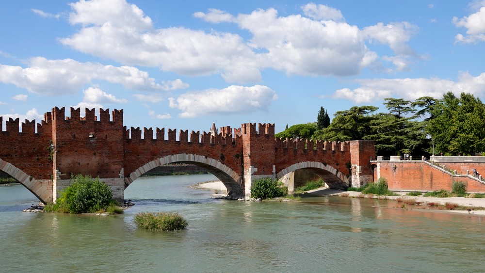Ayant suffisamment arpenté le cœur historique de Vérone, nous nous dirigeons vers le Pont Scaligeri qui fait face au Castelvecchio, tous deux construits vers 1356. Eh oui, encore des bâtiments édifiés par la famille Scaligeri qui, décidément, a laissé son empreinte sur toute la région !