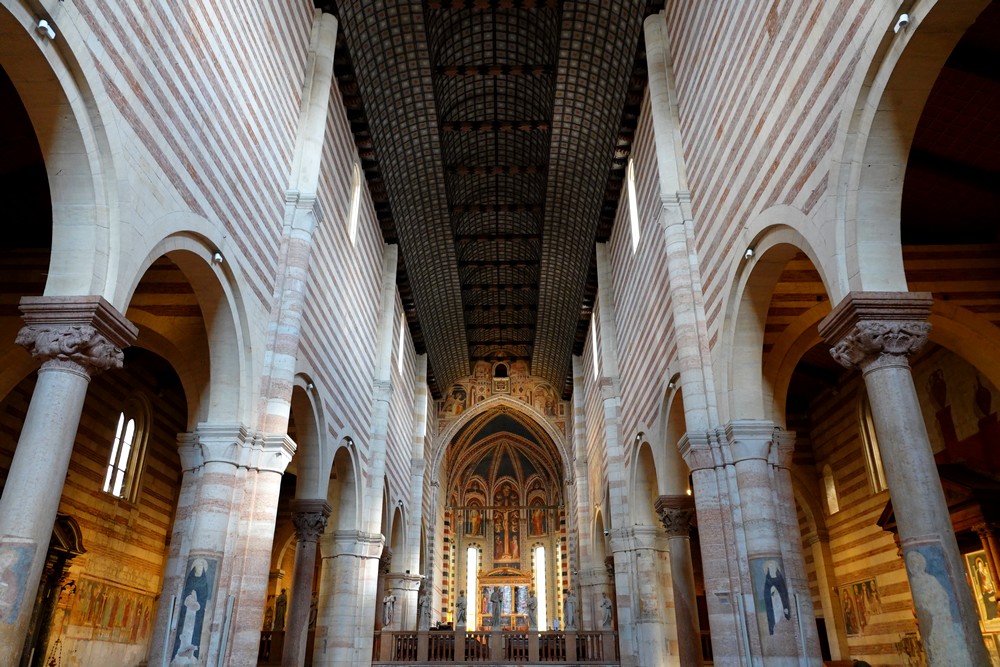 A quelque pas de là se dresse la Basilique Santa Anastasia, une des plus belles églises de la ville. Construite entre 1280 et 1400, elle est remarquable par son superbe plafond peint, ainsi que par ses nombreuses fresques murales encore dans un très bel état de conservation.