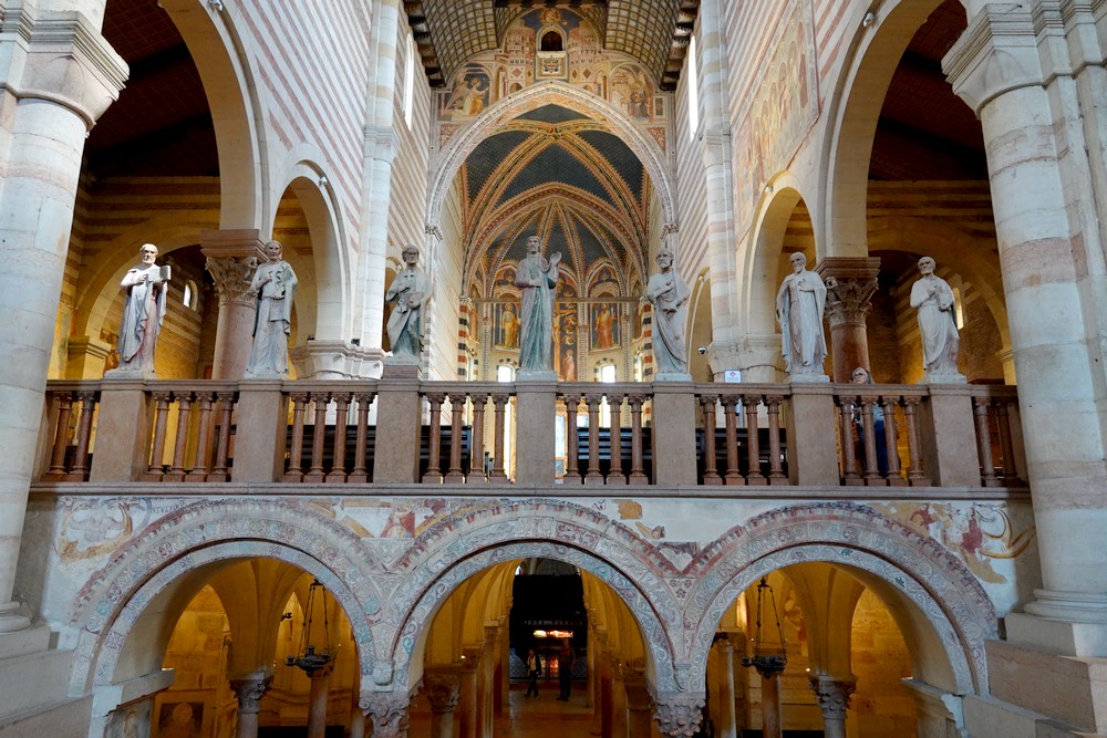 La dernière visite de la journée nous conduit à la Basilique San Zeno, très excentrée. Construite sur trois niveaux, sa structure actuelle date du XIIe siècle. Ici encore, on ne se lasse pas d’admirer les fresques murales.