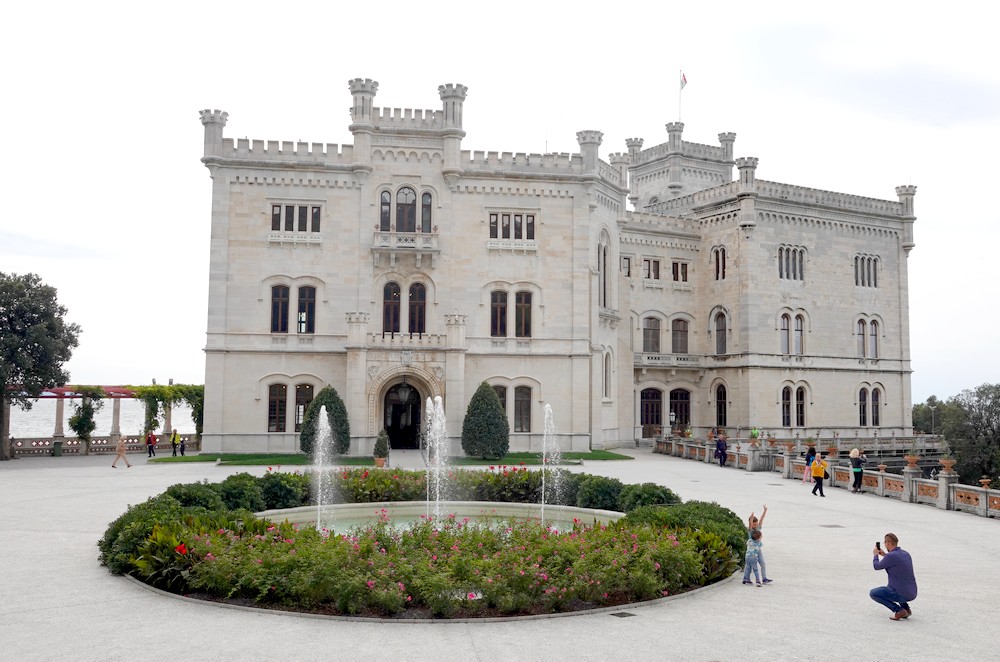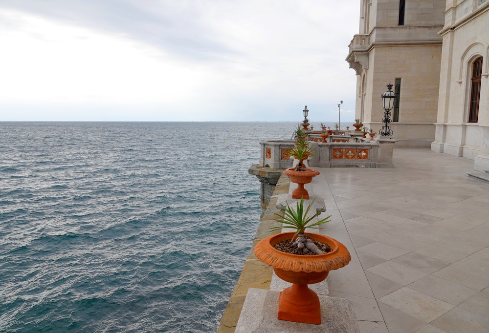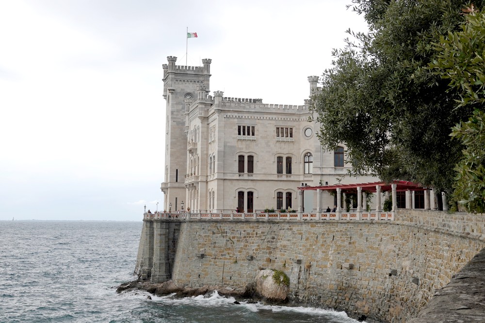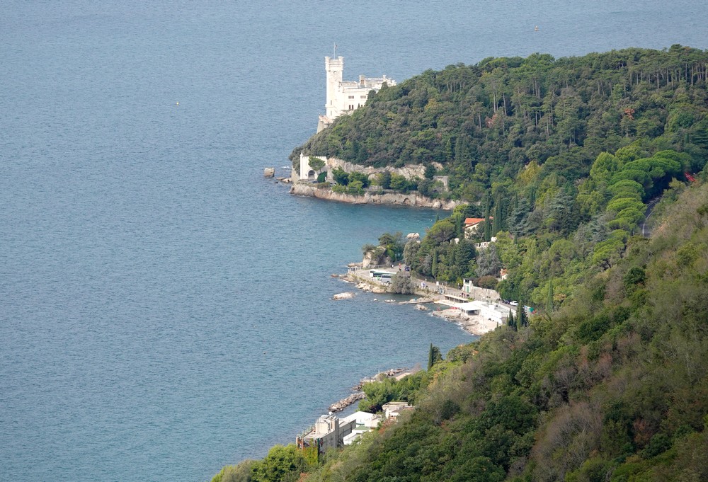 S’il n’y a qu’une seule rando à faire à Trieste, c’est bien celle-ci, car elle offre un superbe panorama en balcon sur la mer, d’ailleurs on l’a faite plusieurs fois ! Le départ se fait au niveau d’Obelisco – à 5mn à pied du camping ou 2mn de l’arrêt des bus 2, 4 et 64 – et se poursuit sur la strada Napoleonica, un confortable chemin de graviers qui descend en pente douce jusqu’à Prosecco, un village idéal pour une pause déjeuner – nous conseillons le Ristorante Be Happy, excellentes brochettes de viande et bon accueil ! Maintenant, il ne reste plus qu’à suivre le sentier, composé de nombreuses marches de pierre, qui dévale jusqu’au niveau de la mer. On passe ensuite un bon moment à arpenter les jardins du Château Miramare, une impressionnante bâtisse, édifiée entre 1856 et 1860 pour Maximilien de Habsbourg-Lorraine, archiduc d’Autriche et futur empereur du Mexique, et son épouse Charlotte de Belgique. Et comme nous ne sommes pas fatigués, nous poursuivons jusqu’à la moitié de la Barcola, la plage de Trieste longue de plusieurs kilomètres, avant de reprendre le bus pour le centre-ville puis pour le camping. Même si le ciel est resté désespérément gris-blanc, c’est une rando que l’on a beaucoup appréciée !
