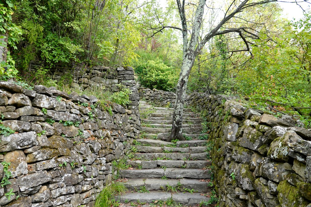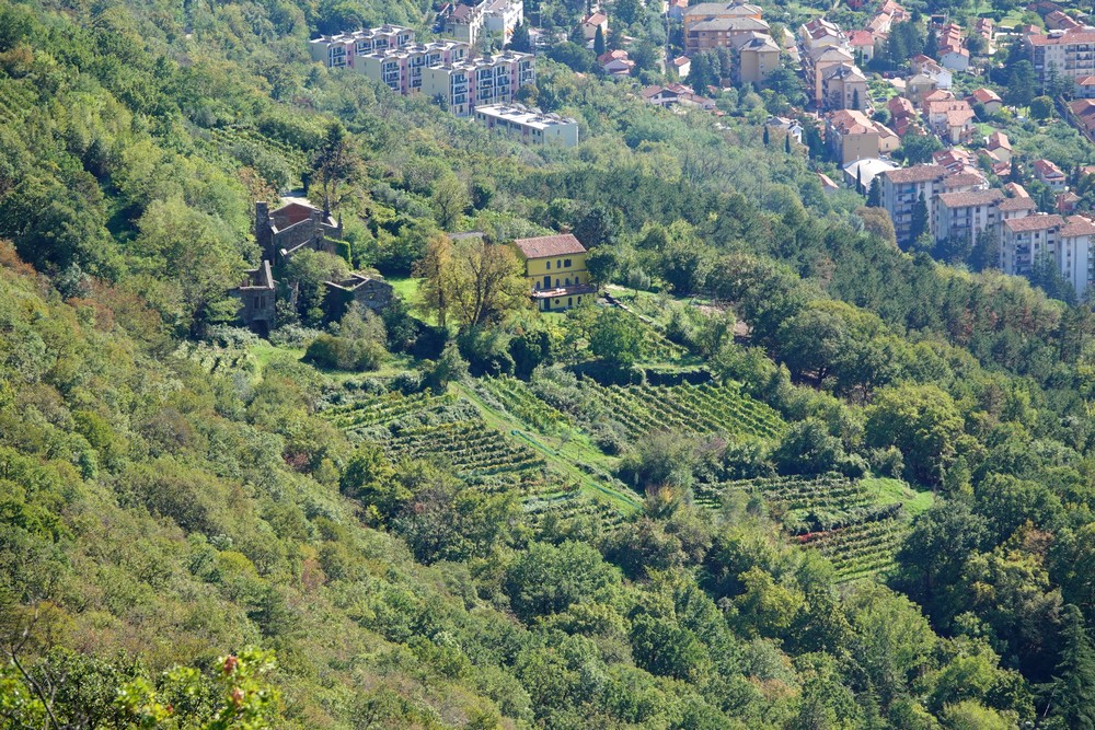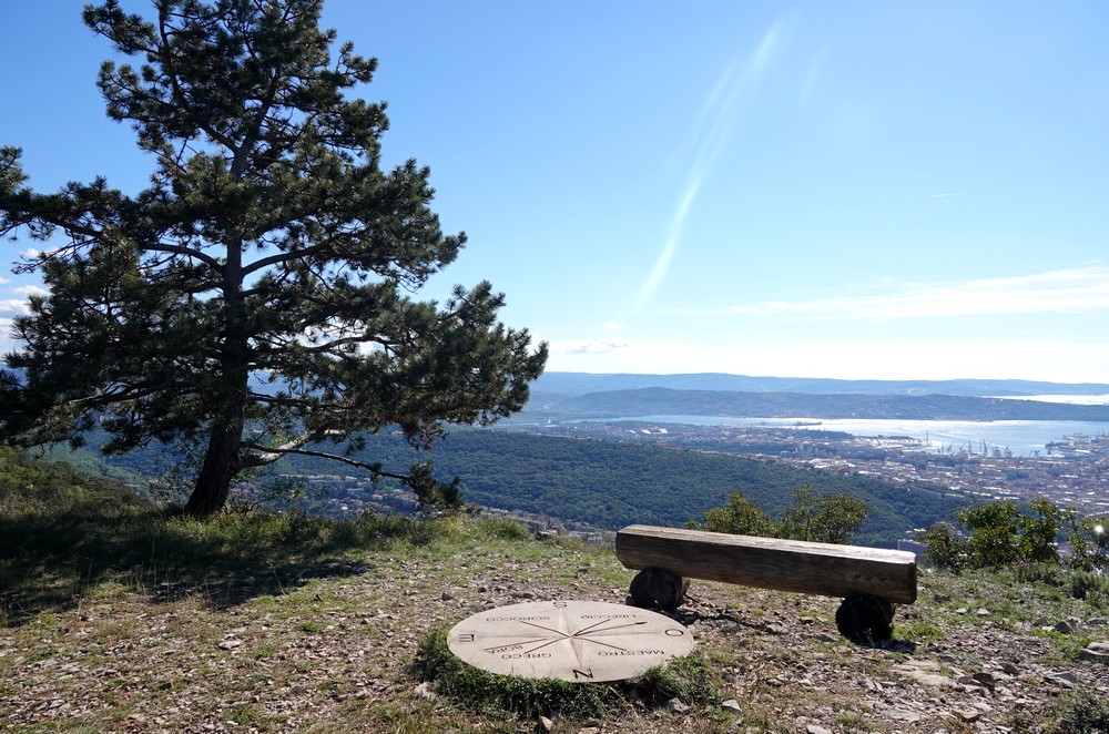 L’attaque de cette rando se fait à Obelisco, en bas du camping, juste à côté de la strada Napoleonica, mais cette fois, on emprunte le sentier Cobolli qui part vers la droite (pas de risque de le rater, il est bien fléché). A l’ombre des arbres, on rejoint ensuite tranquillement le sanctuaire di Monte Grisa, une grosse église tout en béton qui ne nous a pas emballés plus que ça… En revanche, la vue depuis ce promontoire est splendide et vaut largement que l’on entreprenne cette rando ! On redescend ensuite vers Prosecco (attention, le sentier n’est pas facile à trouver, son attaque est à gauche, légèrement en surplomb d’un bâtiment vert abritant des toilettes) par un très beau cheminement, puis on rejoint la strada Napoleonica. Pour rentrer au camping, il reste juste à remonter cette large allée sur 3.5km (peu de points d’ombre). On peut également prendre un bus à Prosecco qui ramène soit à Opicina, soit à Trieste, ou encore descendre à pied au Château Miramare. Balade en boucle de 9km, +270m, prévoir 3h sans se presser, avec pause pique-nique au sommet !