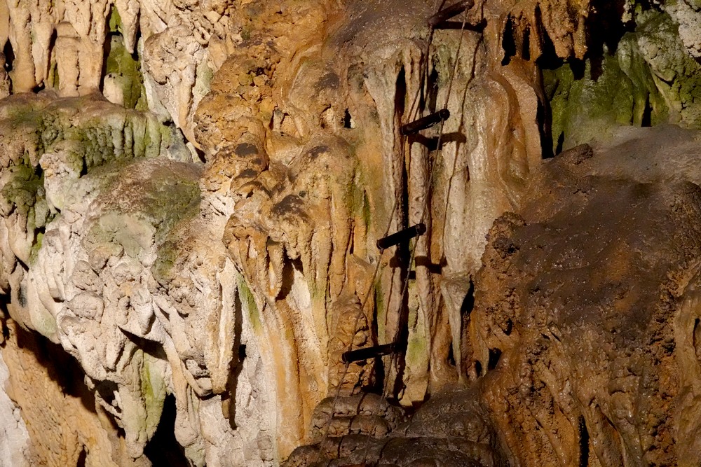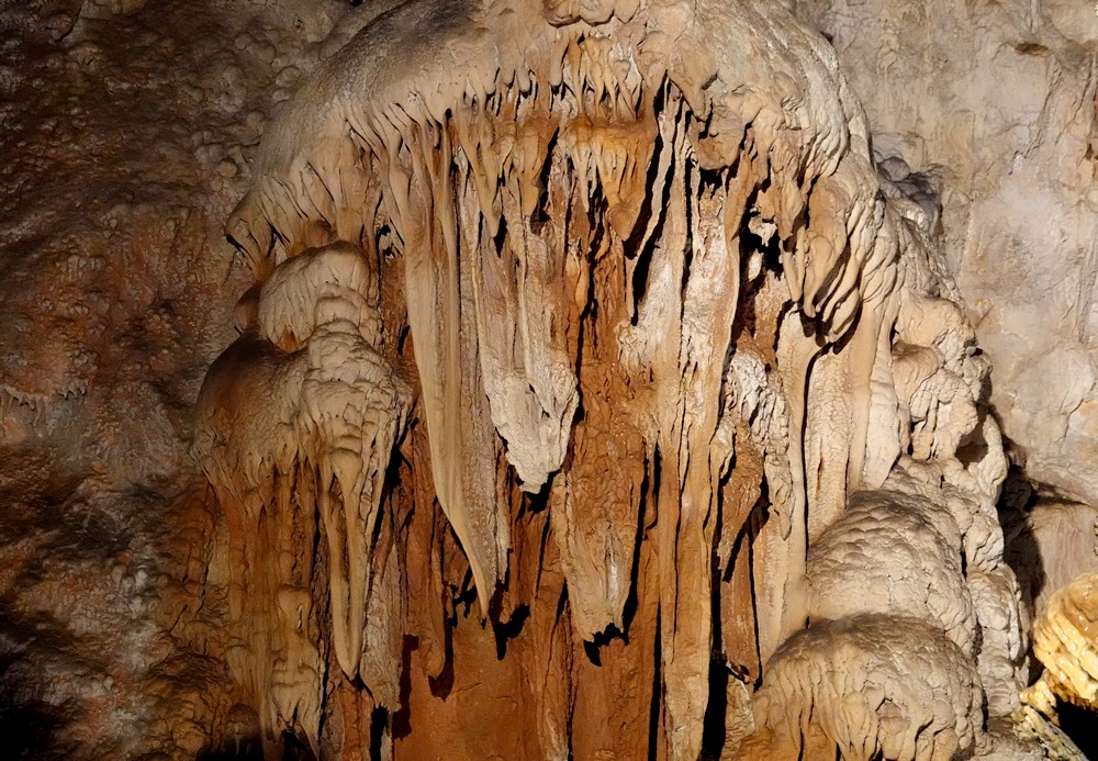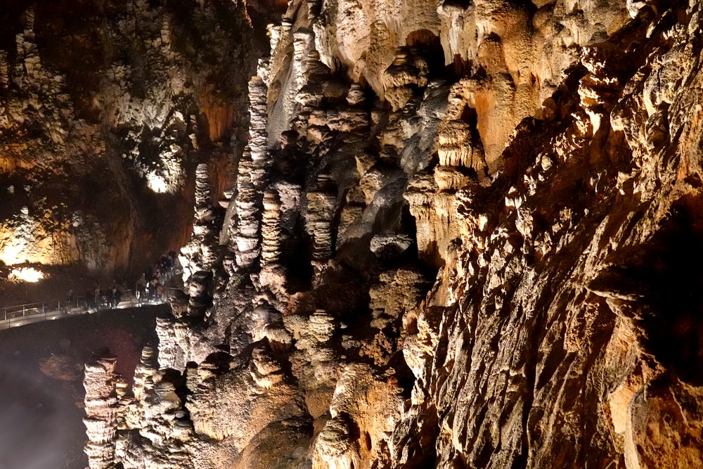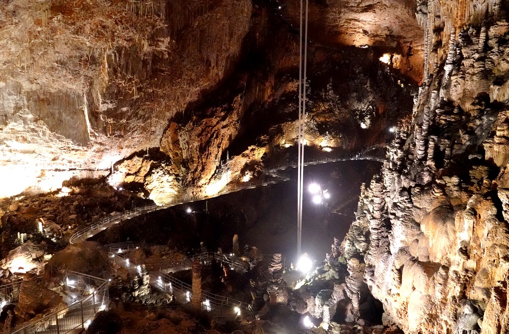 Franchement, cette grotte porte bien son nom tant elle est immense ! C’est d’ailleurs la plus grande grotte du monde ouverte à la visite touristique. Pour découvrir stalactites, stalagmites et harmonieux drapés de concrétions, il faut descendre 120m sous terre, soit 500 marches à la descente, et autant à la remontée ! Au milieu, deux grands tuyaux protègent deux pendules géodésiques qui étudient les mouvements de la croute terrestre. Depuis le camping Obelisco, nous y sommes allés en bus, mais on aurait aussi pu pédaler car la grotte, distante de 5km, est sur le plateau : il n’y a donc pas trop de dénivelé ! Jouxtant la grotte, on conseille le restaurant Dom Bistro : très bonnes pizzas !