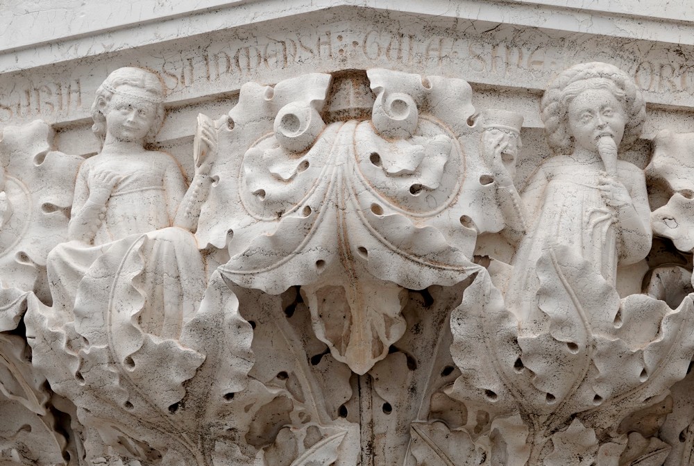Mais ce que l’on apprécie surtout, c’est observer les mille détails de cette place, comme par exemple les bas-reliefs des murs du Palais des Doges, les statues qui ornent le bâtiment proche du campanile et les bronzes de la Tour de l’Horloge, ou encore les deux colonnes de Saint Marc et de Saint Théodore où le lion – emblème de la ville – est omniprésent…