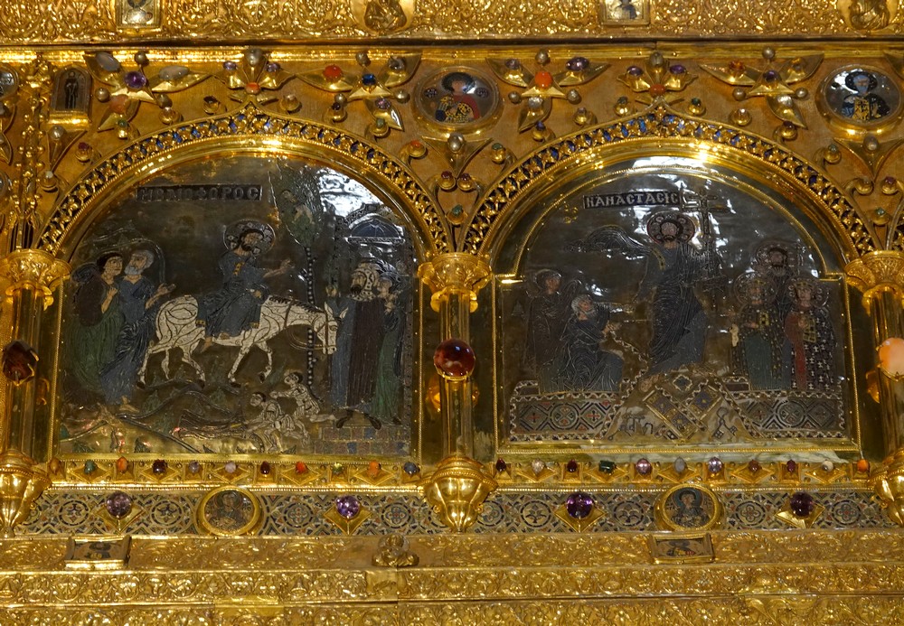 Très impressionnant, le Palais d’Or est un retable doré, pièce d’orfèvrerie exceptionnelle de style vénéto-gothique et exemple majeur d’émaux byzantins contenant également 1927 pierres précieuses !