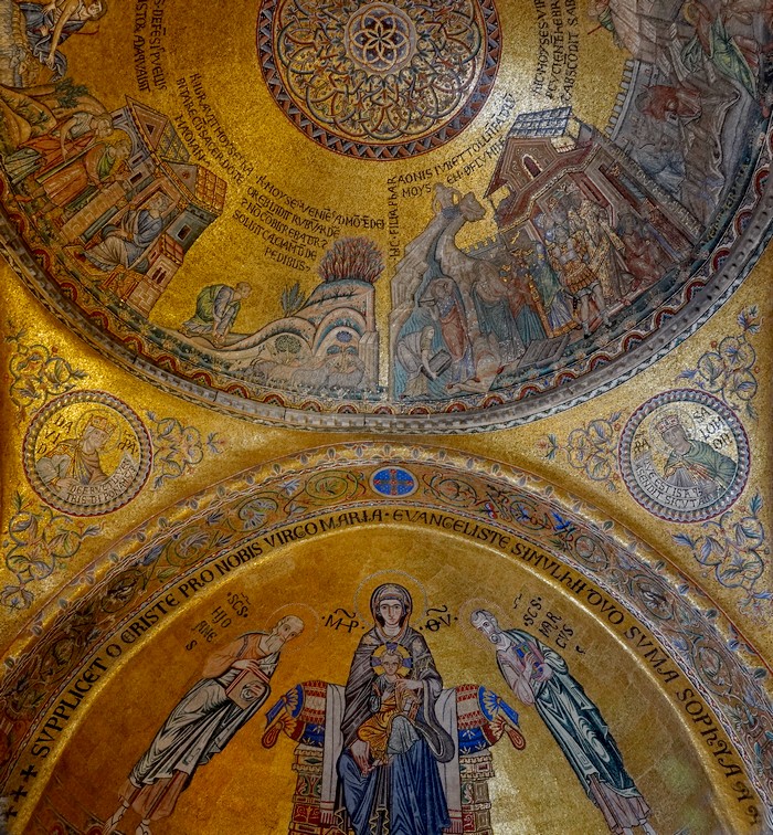L’intérieur de la basilique est époustouflant ! Les mosaïques sur fond d’or ont d’ailleurs valu à l’église le surnom de basilique d’Or. Si les premiers travaux ont eu lieu dans les années 1071-1084, la plupart des mosaïques ont cependant été réalisées au cours du XIIIe siècle.