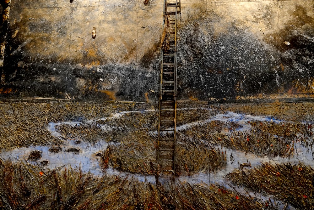 La grande salle du Scrutin accueille actuellement une expo d’Anselm Kiefer, spécialement conçue pour le Palais des Doges. Une œuvre assez noire mais néanmoins optimiste, que l’artiste a intitulé de la citation du philosophe vénitien Andrea Emo (1901-1983) : Ces écritures, quand elles brûleront, apporteront finalement un peu de lumière, sous-entendant que toute création est éphémère et disparaît dans l’épaisseur du temps pour laisser d’autres briller en surface… (source actu-culture.com)