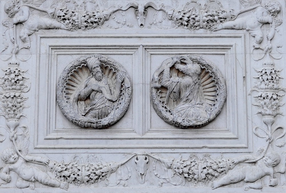 Trois ponts plus loin – oui, ici, on compte beaucoup en nombre de ponts à franchir ! – nous parvenons à la belle église Santa Maria del Giglio, dont la façade, baroque à souhait, affiche plusieurs reliefs originaux – notamment les représentations de différentes villes de Méditerranée, comme Corfou ou Candia, l’actuelle Héraklion.