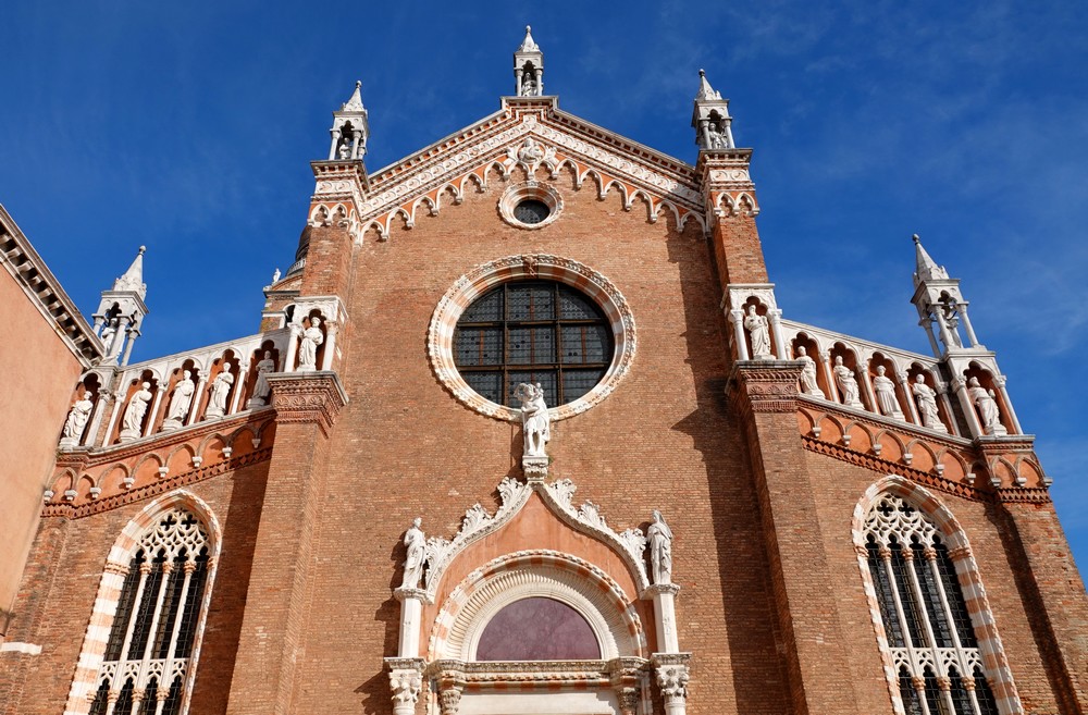 Encore quelques pas, et nous arrivons devant la belle façade gothique de la Madonna dell’Orto, datant du XVe siècle et dotée d’un campanile à bulbe qui, indéniablement, rappelle l’architecture orientale…