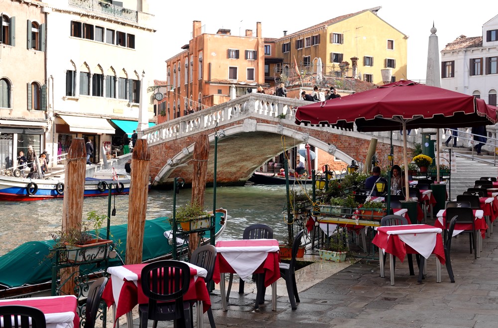 Une grosse faim se faisant sentir, on reprend le canal en sens inverse, puis on marche jusqu’au Ponte delle Guglie où l’on rejoint le rio Terà San Leonardo, très animé – logique car il fait partie de l’itinéraire qui relie le plus rapidement la gare ferroviaire à la place Saint Marc.