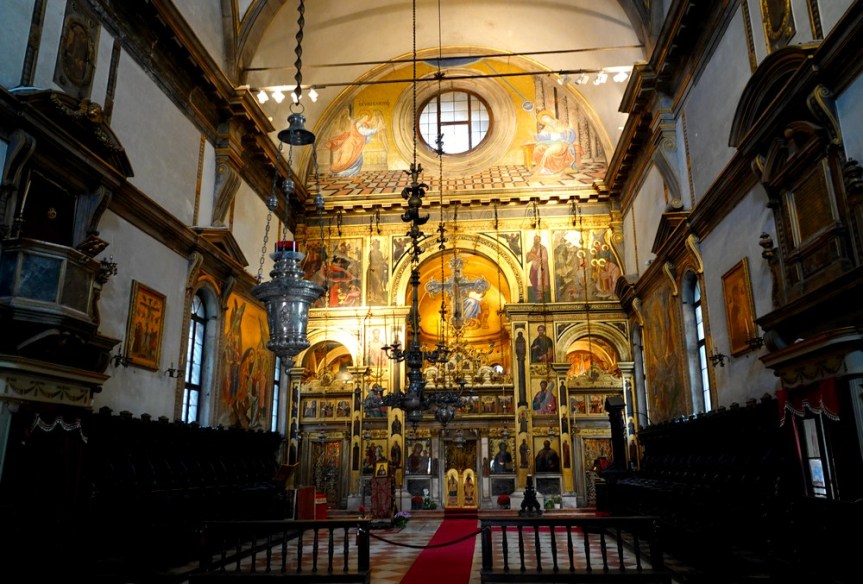 L’animation reprend dès que l’on aborde le quartier où se trouve l’église San Giorgio dei Greci, la plus ancienne église orthodoxe grecque d’Occident. L’intérieur est splendide avec ses icônes dorées…