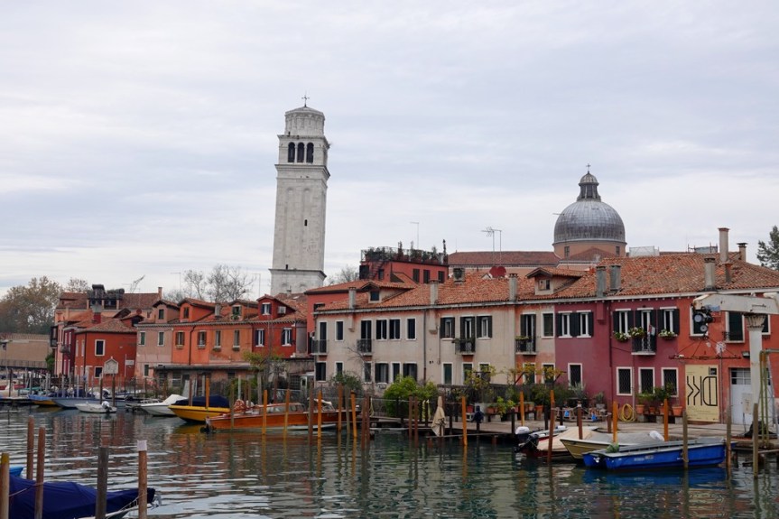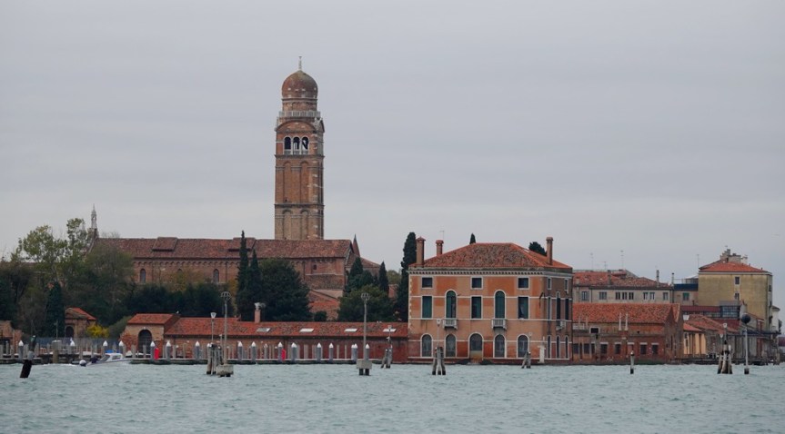 Après une petite pause déjeuner dans un bistrot de quartier, il nous reste maintenant à nous diriger vers l’ile de San Pietro di Castello, un quartier autrefois peuplé d’artisans et d’ouvriers. Nous visitons l’église, dont le campanile penche nettement, puis nous repartons vers Sant Elena, toute proche.