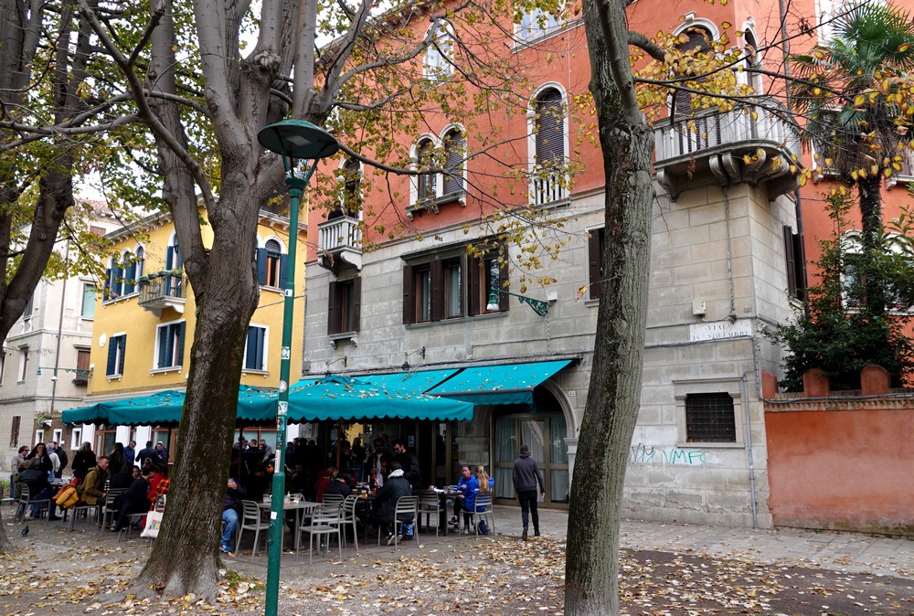 Si nous zappons la visite intérieure de la basilique et de la Scuola Grande – il faut en garder pour un prochain séjour ! – nous passons un bon moment sur cette jolie place particulièrement appréciée d’Hugo Pratt, dont la maison était toute proche.