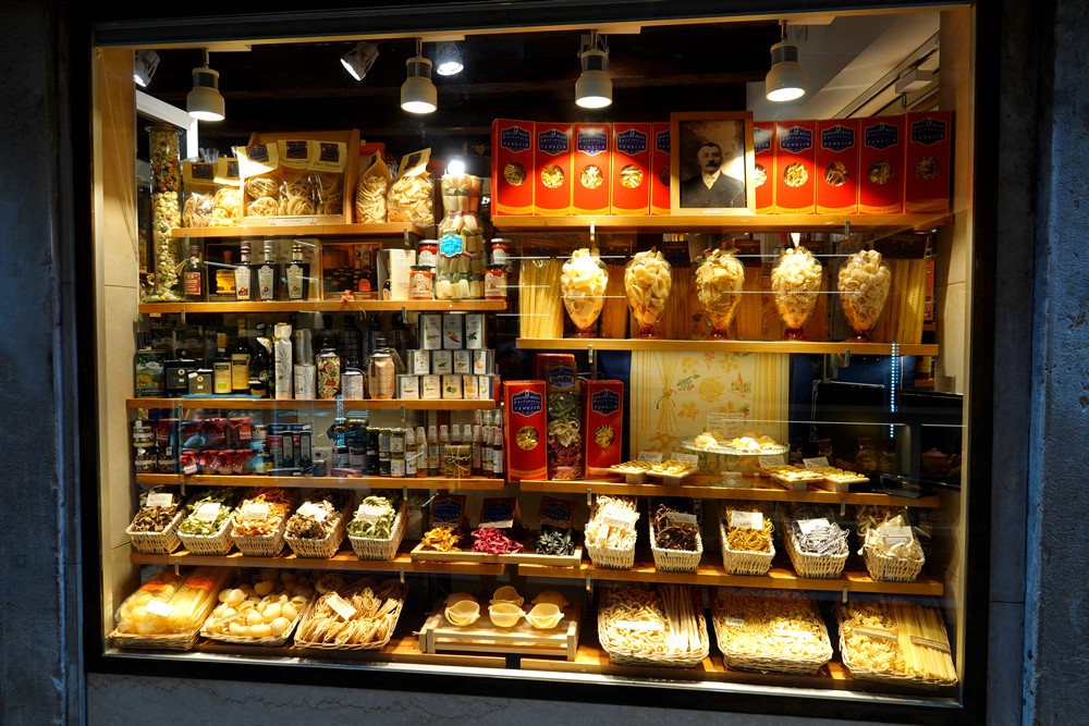 Puis, sans nous presser, nous rejoignons le Campo Santa Maria Formosa en flânant devant les vitrines d’artisans. Nous jetons également un œil aux petits commerces plus classiques – cordonneries, boucheries, épiceries, merceries, cafés – car il ne faudrait pas imaginer que Venise soit une ville-musée ! Bien au contraire, c’est vraiment une ville qui vit au rythme de ses habitants !