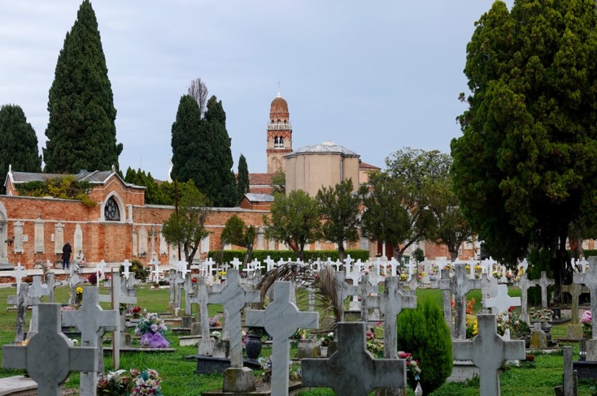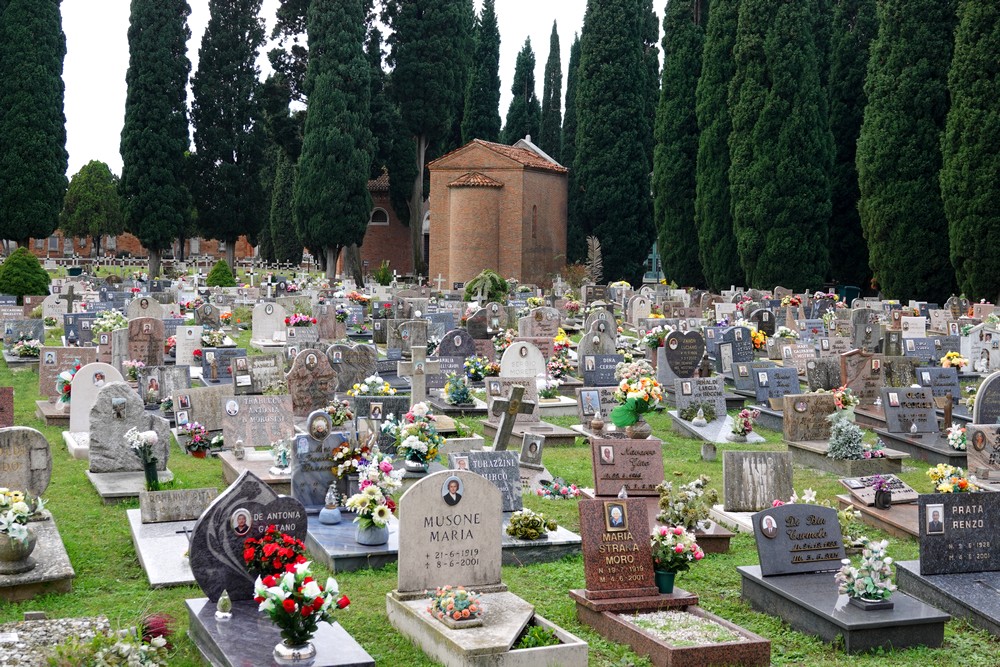 Le cimetière est partagé en plusieurs secteurs suivant les obédiences catholique, orthodoxe ou évangélique. Le cimetière juif, lui, se trouve sur l’île du Lido.