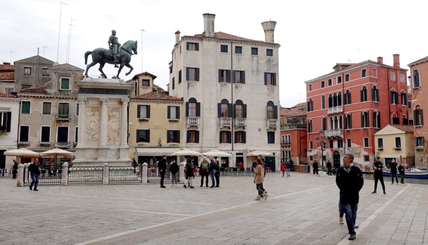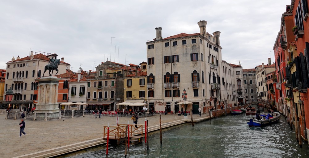 Une fois revenus aux Fondamente Nuove, nous nous perdons dans un lacis de ruelles pour rejoindre le beau campo Santi Giovanni e Paolo dominé d’un côté par la basilique du même nom, et de l’autre par la Scuola Grande di San Marco. Mais en chemin, Gérard ne résiste pas à l’appel du puits et de la gondole !