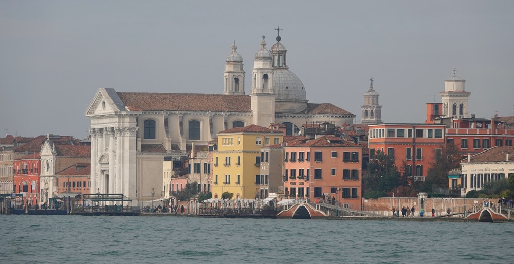 D’un coup de vaporetto nous traversons le large canal qui sépare le Dorsoduro de l’ile de la Giudecca. Autrefois appelée Spina Longua – longue épine – en raison de sa forme très allongée, l’ile était parsemée de jardins, de potagers, de palais et de villas. Il n’en reste quasiment plus rien aujourd’hui, l’industrialisation de la fin du XIXe siècle ayant radicalement transformé le paysage. Toutefois, se balader sur les quais est très agréable, et si le ciel est dégagé, on bénéficie d’une superbe vue sur les Zattere du Dorsoduro et sur San Marco.