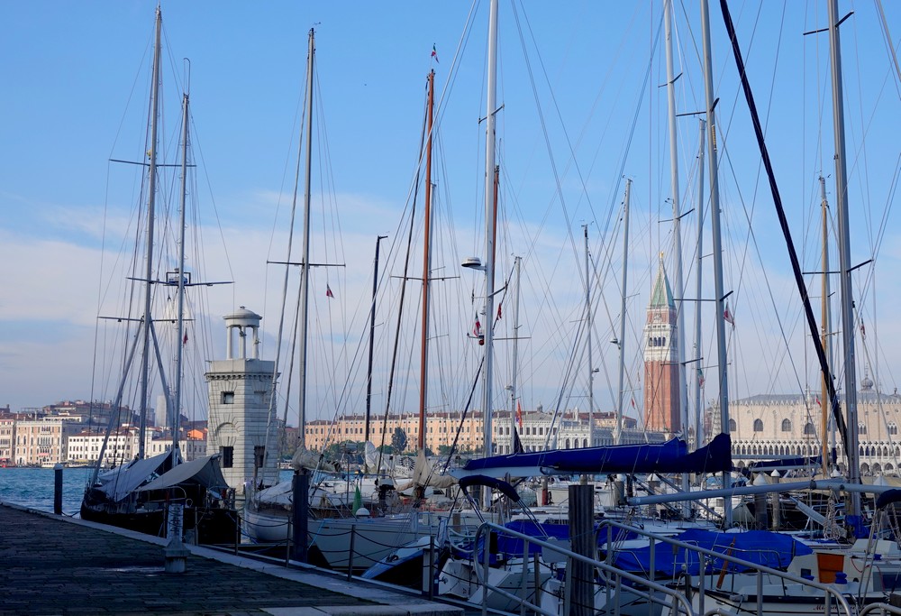 Après seulement quelques minutes de navigation, nous débarquons sur San Giorgio et nous commençons par nous balader sur le quai bordé par une marina.