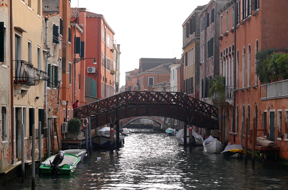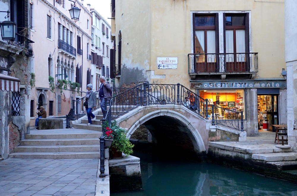 La balade se poursuit du vaste Campo San Polo au Musée Ca’Pesaro, entre ruelles et ponts, belles boutiques d’artisans et petits bistrots où on déguste de bonnes cicchettis arrosées d’un verre de Proseco – notre adresse préférée étant l’Osteria dai Zemei où nous sommes allés quatre fois ! Ce quartier étant très dense et riche en découvertes, nous l’avons arpenté à plusieurs reprises, de jour comme de nuit, sous le soleil, la pluie ou encore la brume…Petite balade en images, les photos de Gérard étant plus parlantes qu’un de mes longs blablas habituels !