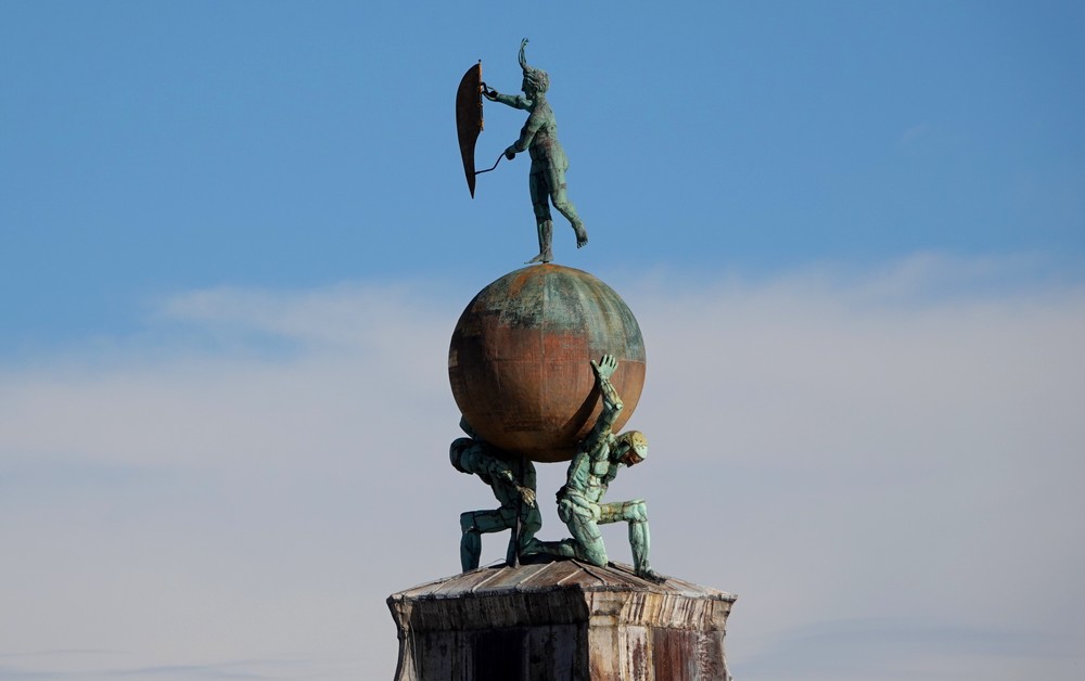 Revenus le long du Grand Canal, nous visitons l’imposante église de la Salute – actuellement empaquetée pour cause de rénovation – dont la construction fut décidée par le Sénat de Venise en 1630 : si la Vierge Marie libérait la ville de l’épidémie de peste qui avait déjà fait 50.000 morts, une basilique lui serait dédiée. Immédiatement l’épidémie vaincue, les travaux débutèrent… Techniquement parlant, la Salute est l’édifice de Venise qui repose sur le plus grand nombre de pilotis, à savoir 1.156.6721 pour être précis !