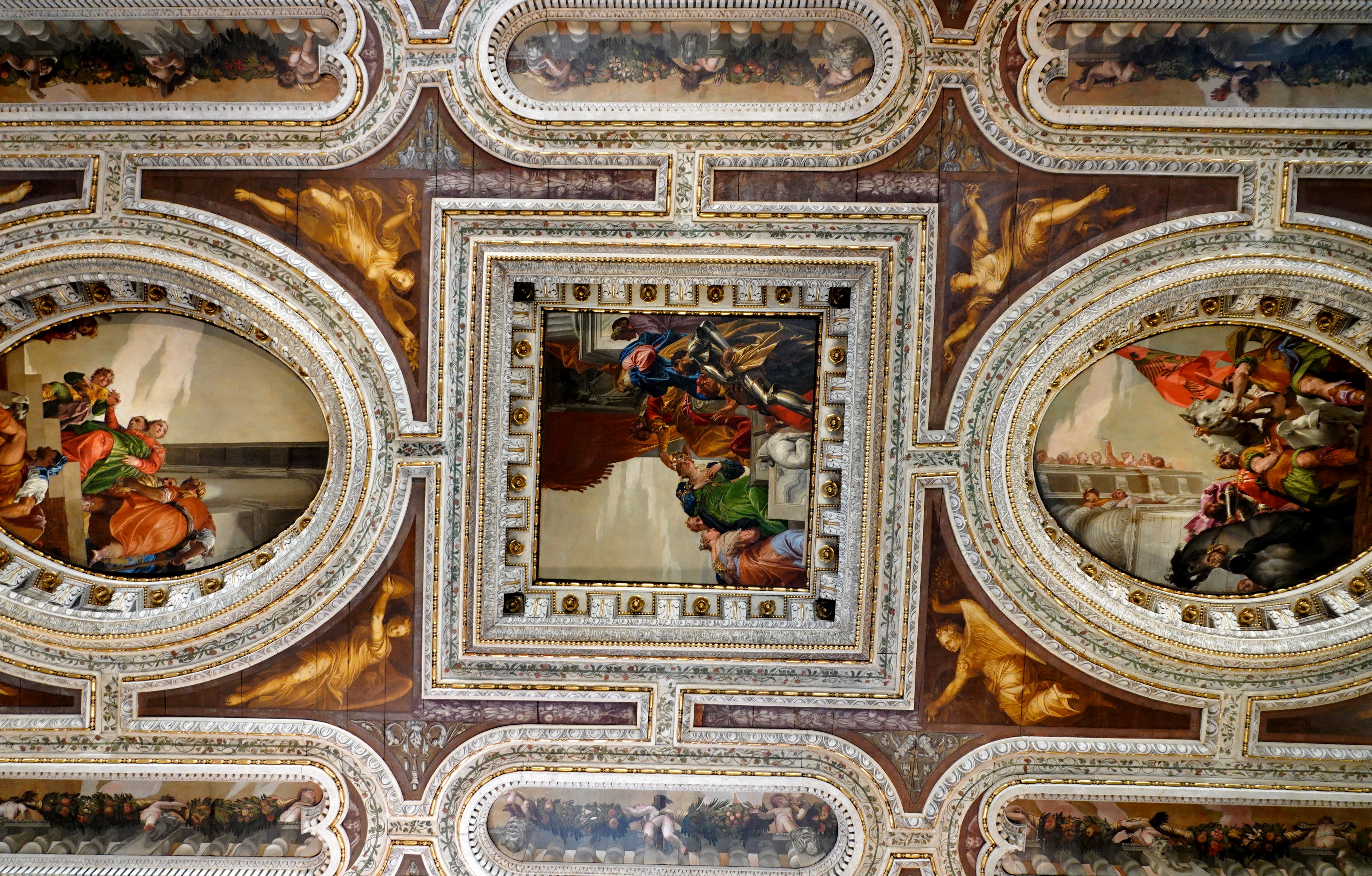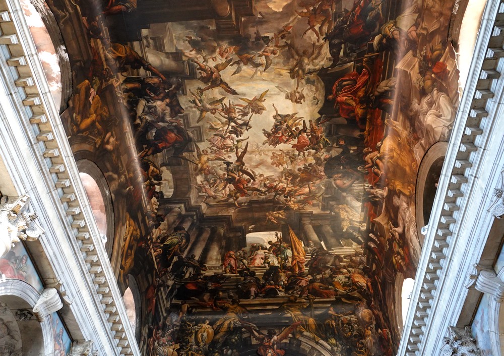 On zappe la visite de la Scuola Grande di San Rocco – ce sera pour une prochaine fois – mais on pénètre dans l’église San Pantalon, dont l’extraordinaire plafond est peint sur une toile qui serait la plus grande d’Italie ; on doit cette œuvre à Gian Antonio Fumiani qui mit 24 ans à la réaliser, de 1680 à 1704 !