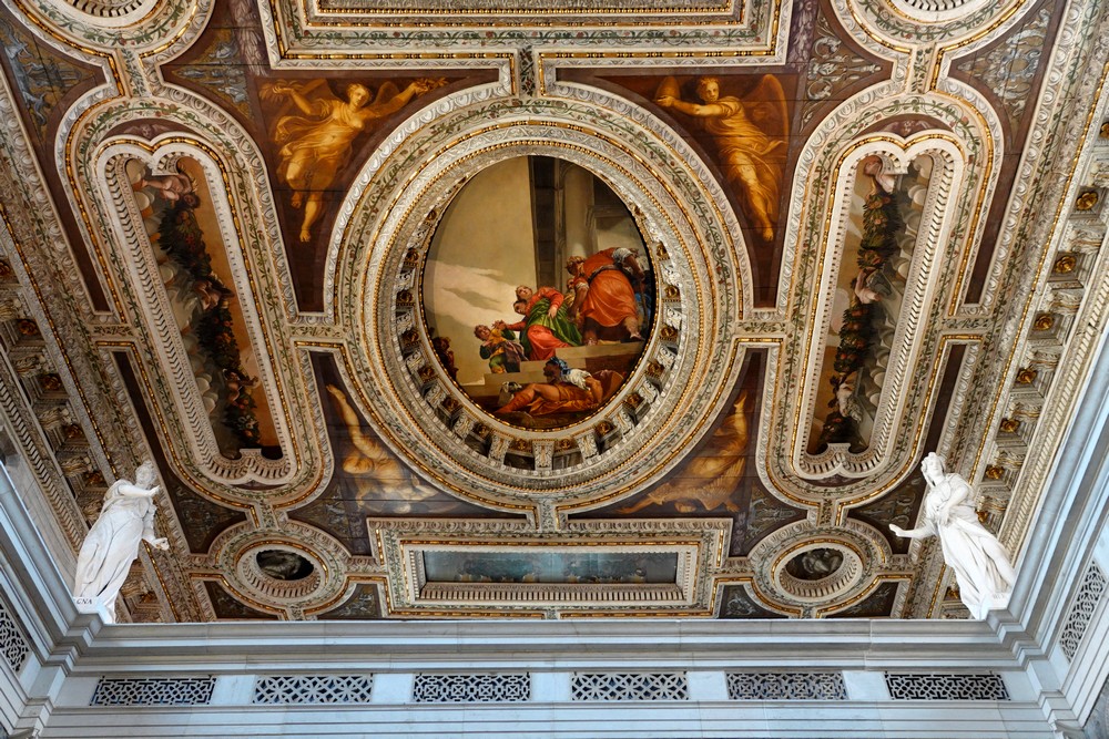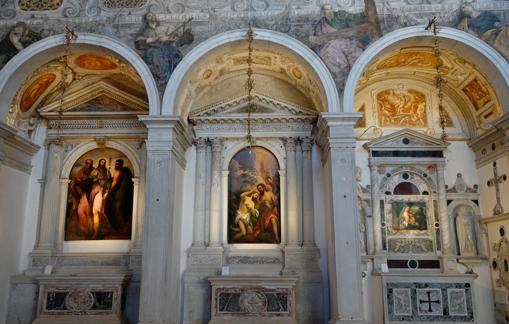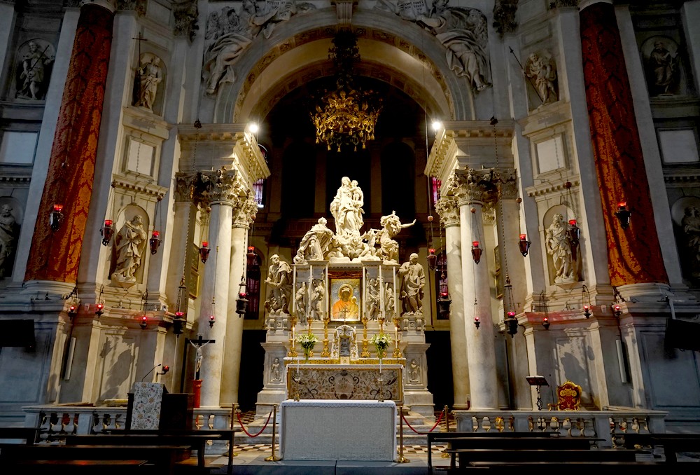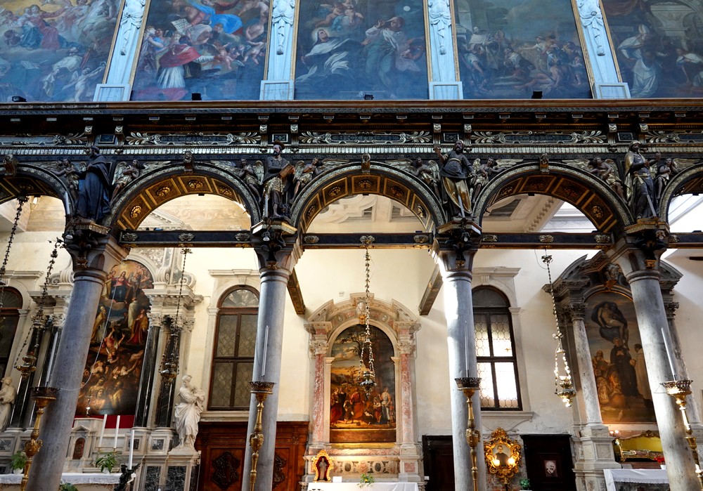 Nous poursuivons alors jusqu’à l’église San Sebastiano, chef d’œuvre baroque du XVIe siècle où nous passons un long moment à détailler retable – signé Titien – chapelles, et peintures de Véronèse – il est d’ailleurs inhumé ici. Un gros coup de cœur pour cette bonbonnière de marbre et de stucs !