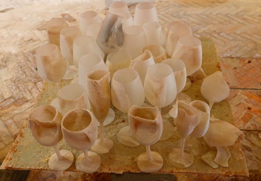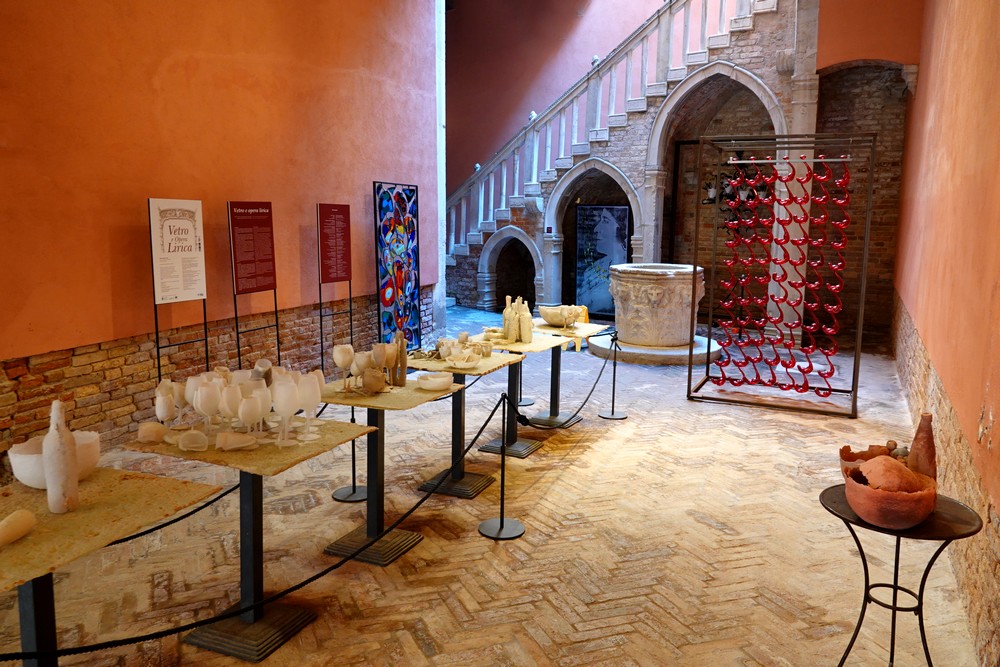 En bas, une expo temporaire présente différentes œuvres d’artistes qui revisitent l’art du verre, un clin d’œil aux célèbres verriers de Murano.