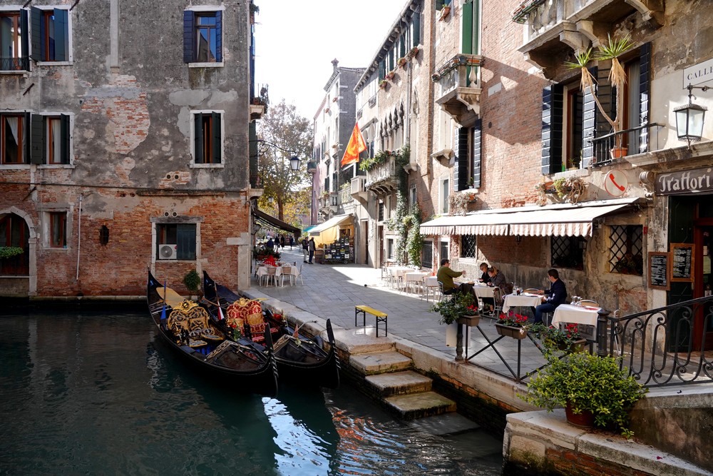 Tout le quartier regorge de ruelles et petites cours dans lesquelles il est bon de se perdre avant de rejoindre San Trovaso… Et parfois, au détour d’une calle, on se retrouve face au Grand Canal tout proche !
