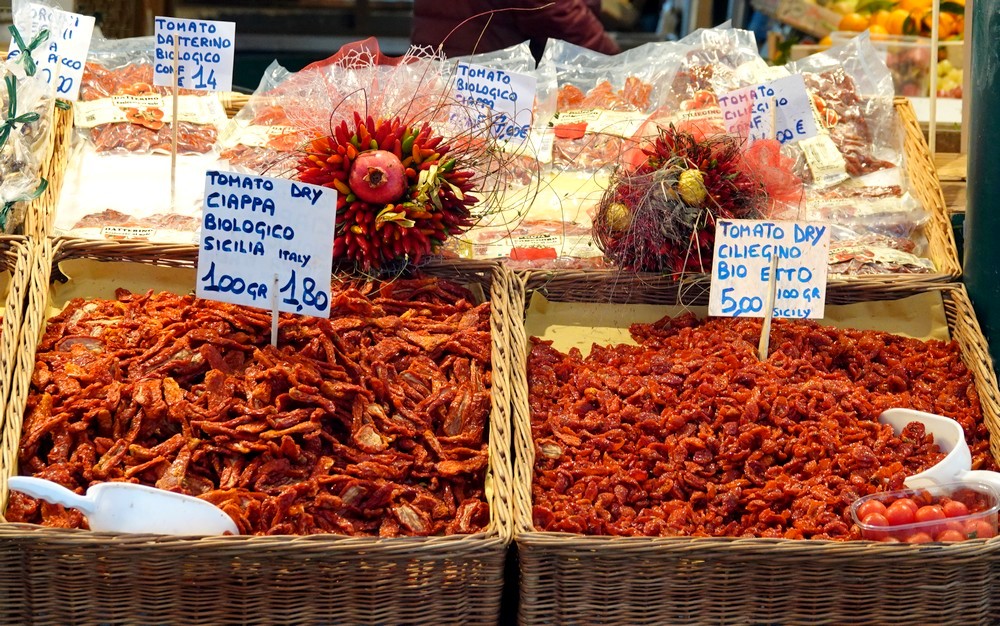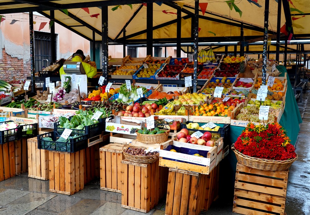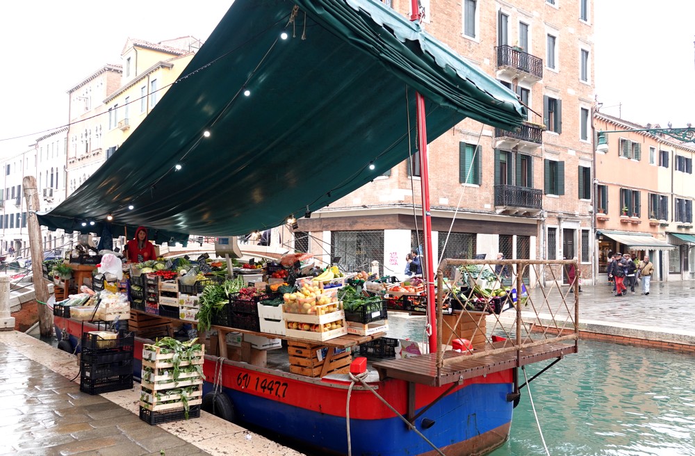 La Porte de l’Amour s’ouvre au Rialto, autrefois cœur économique de la cité quand les marchands arrivaient chargés d’étoffes des Flandres, de vêtements de soie, de pierres précieuses et de parfums venus d’Orient. Juste à côté, fruits, légumes, poissons et volailles achevaient d’aiguiser les sens des chalands… Ce marché bien coloré se tient toujours de nos jours, et est très prisé des Vénitiens ! Et quel plaisir de le découvrir au petit matin, quand le jour pointe à peine…